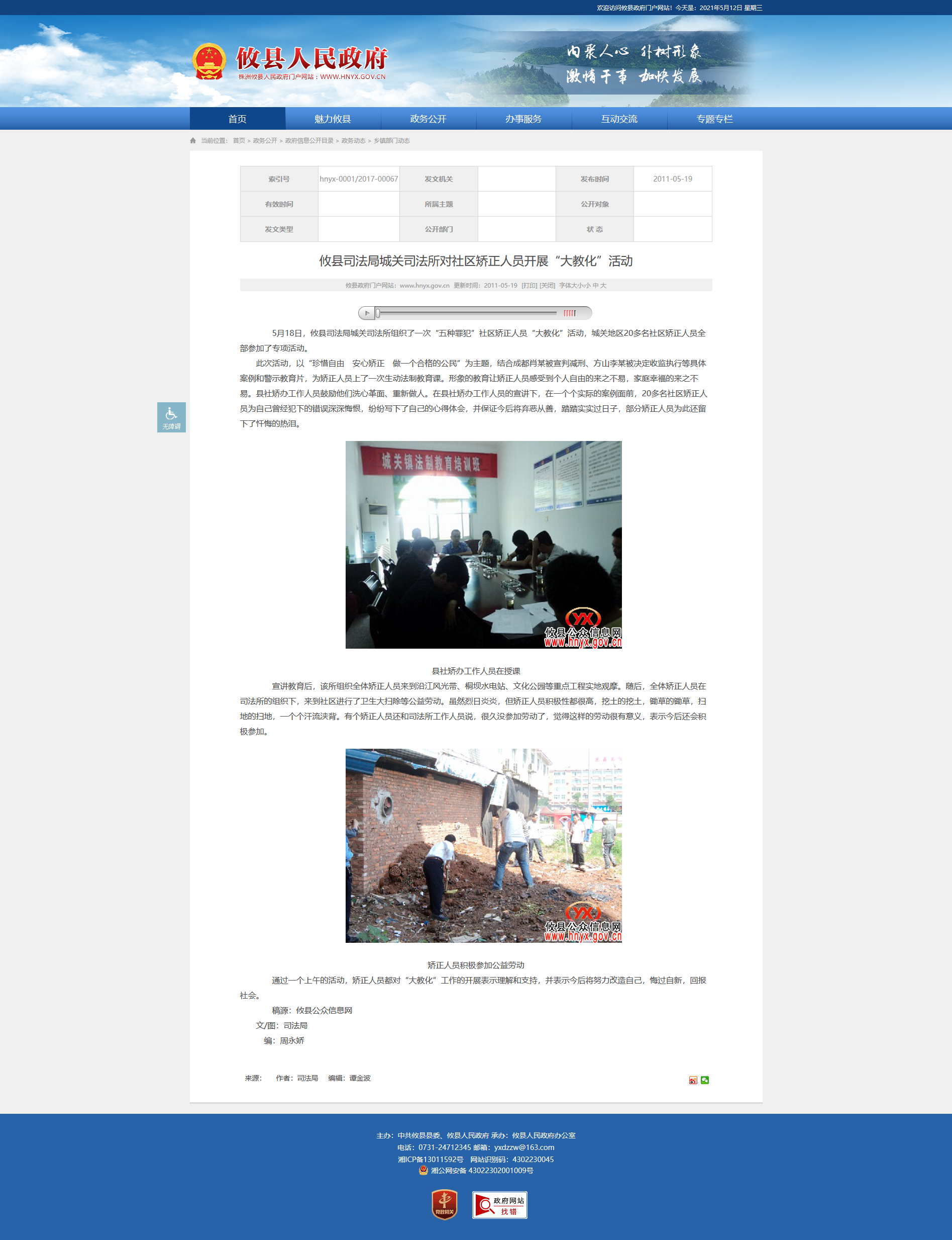 5月18日,攸县司法局城关司法所组织了一次“五种罪犯”社区矫正人员“大教化”活动,城关地区20多名社区矫正人员全部参加了专项活动。