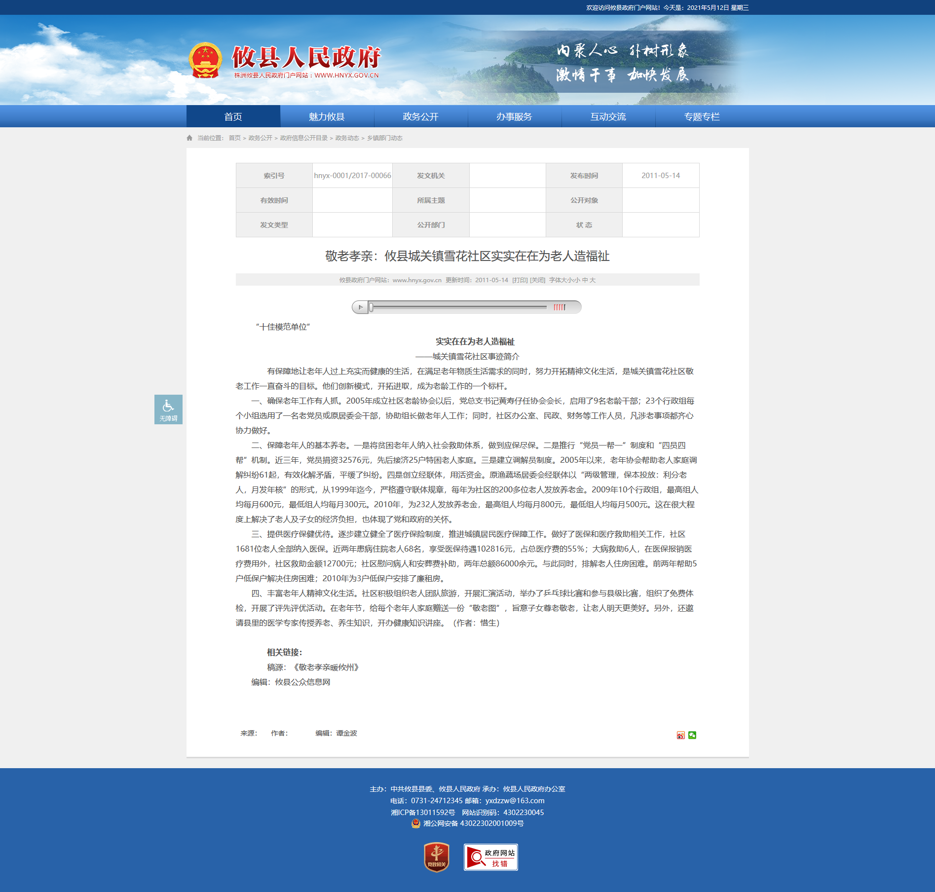 有保障地让老年人过上充实而健康的生活,在满足老年物质生活需求的同时,努力开拓精神文化生活,是城关镇雪花社区敬老工作一直奋斗的目标。他们创新模式,开拓进取,成为老龄工作的一个标杆。