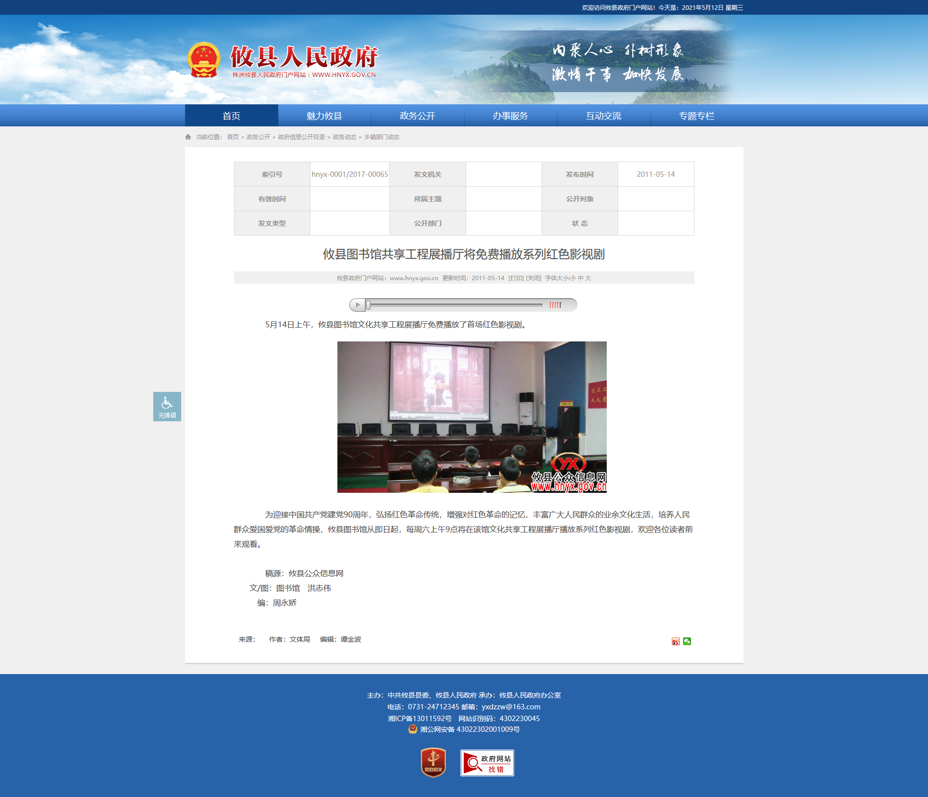 时间:2011-05-14 00:00:00 来源: 攸县人民政府 来源截图