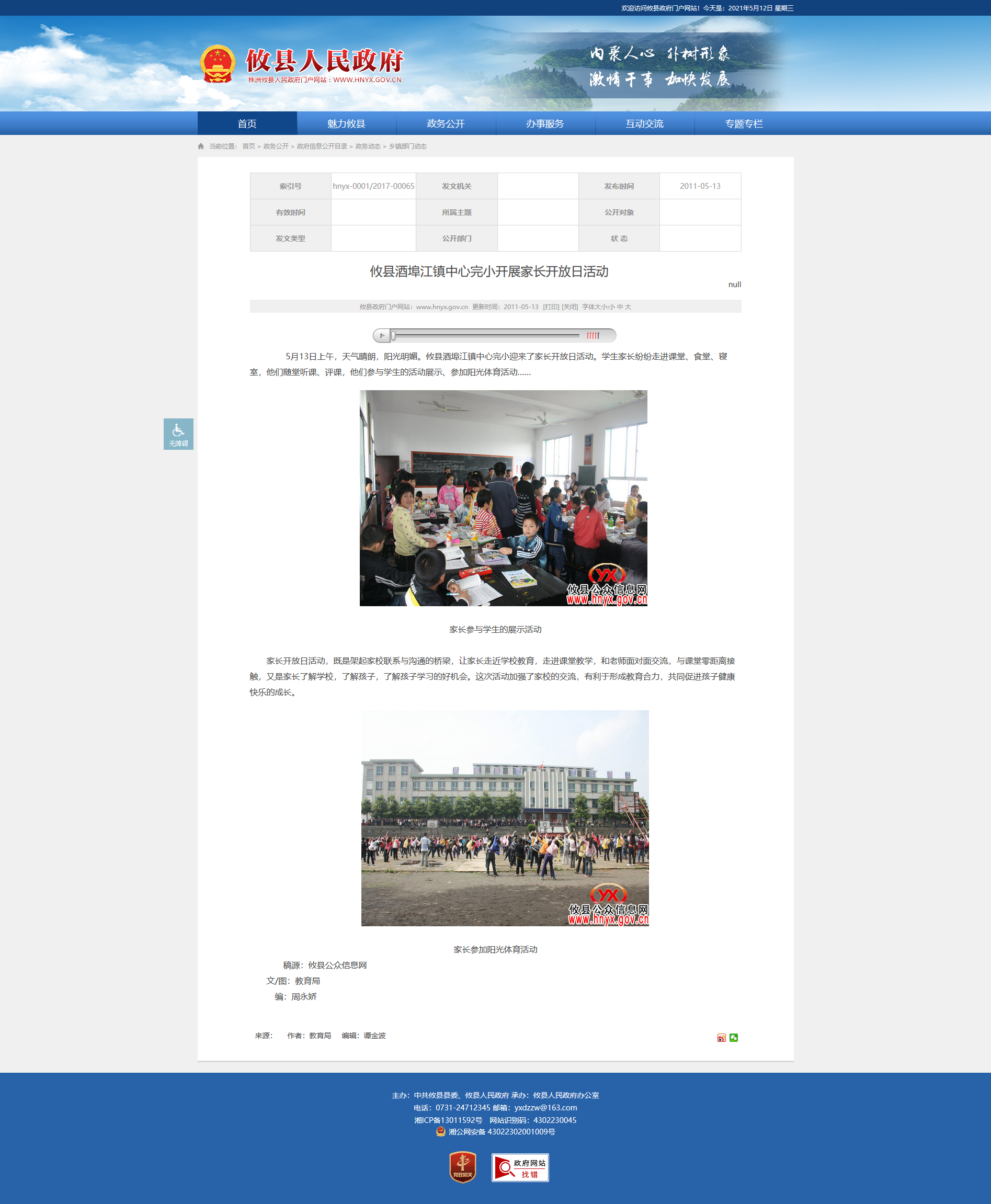 5月13日上午,天气晴朗,阳光明媚。攸县酒埠江镇中心完小迎来了家长开放日活动。学生家长纷纷走进课堂、食堂、寝室,他们随堂听课、评课,他们参与学生的活动展示、参加阳光体育活动……