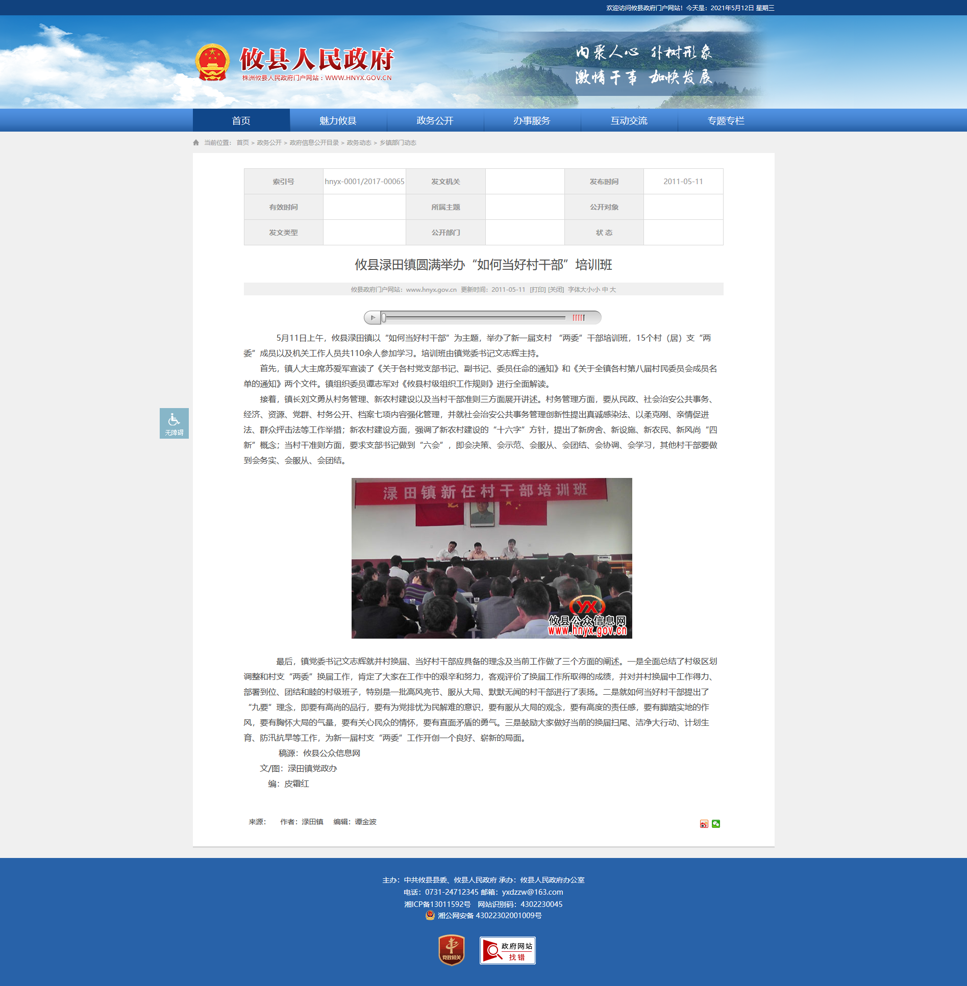5月11日上午,攸县渌田镇以“如何当好村干部”为主题,举办了新一届支村 “两委”干部培训班,15个村(居)支“两委”成员以及机关工作人员共110余人参加学习。培训班由镇党委书记文志辉主持。