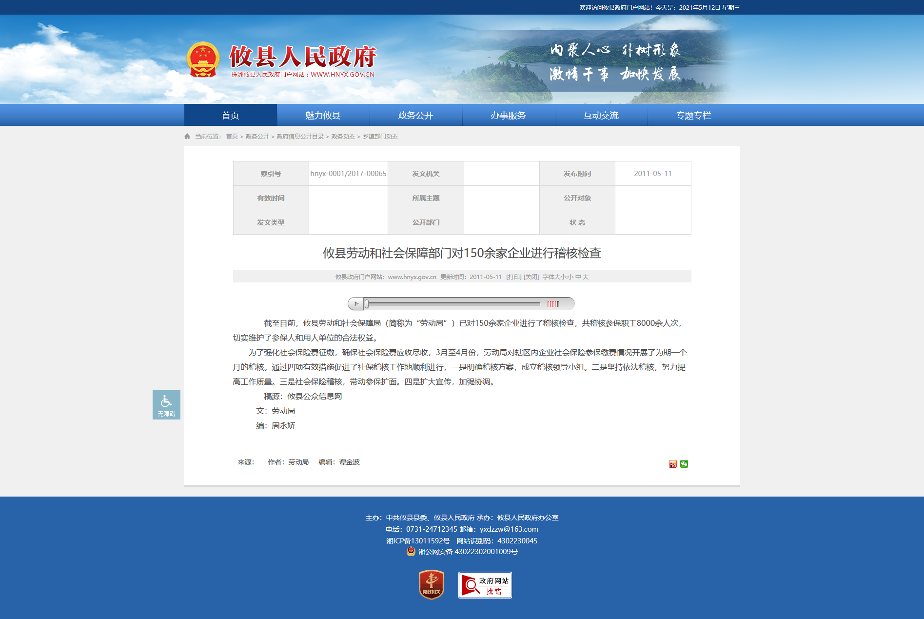 截至目前,攸县劳动和社会保障局(简称为“劳动局”)已对150余家企业进行了稽核检查,共稽核参保职工8000余人次,切实维护了参保人和用人单位的合法权益。