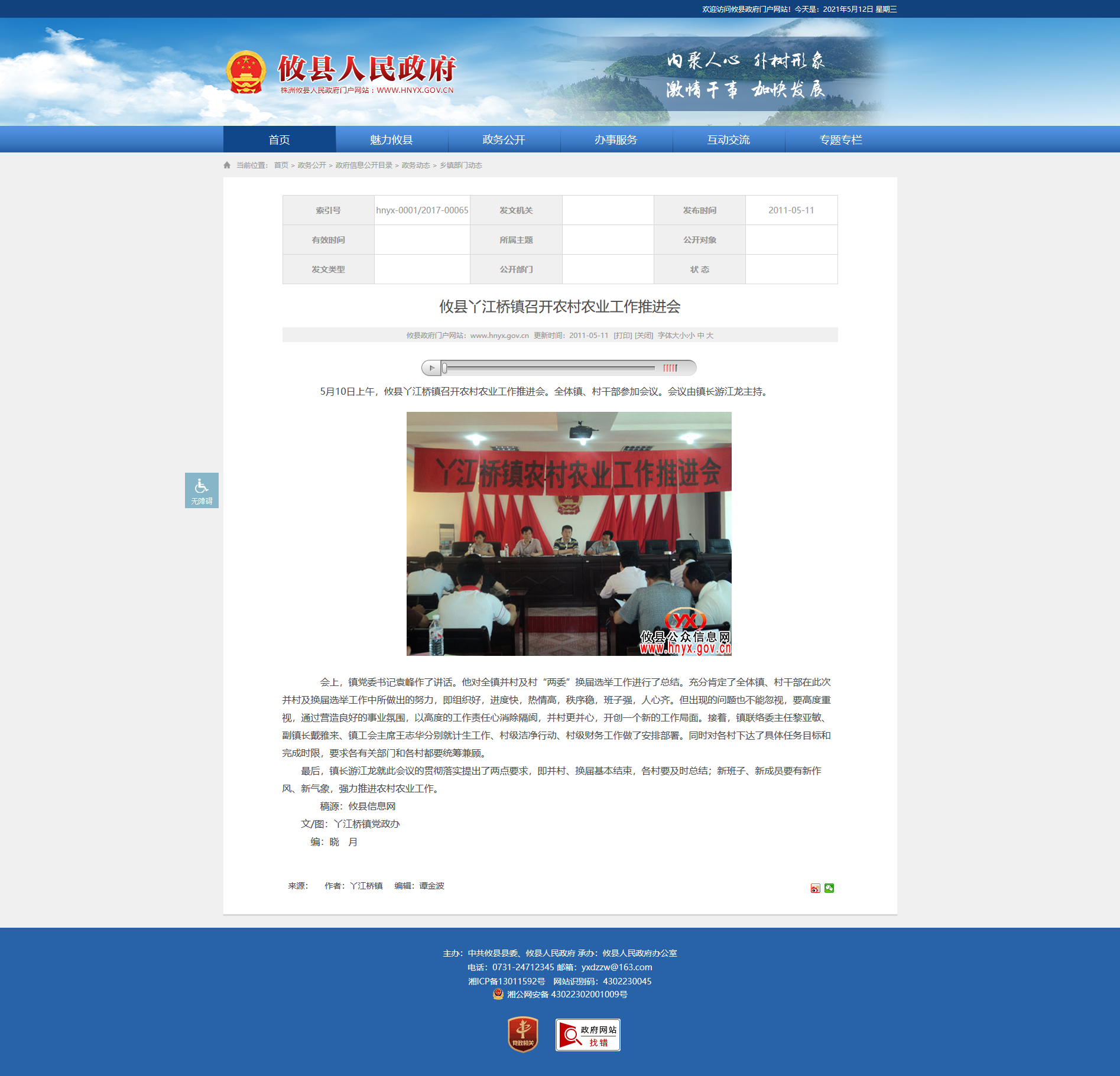 5月10日上午,攸县丫江桥镇召开农村农业工作推进会。全体镇、村干部参加会议。会议由镇长游江龙主持。