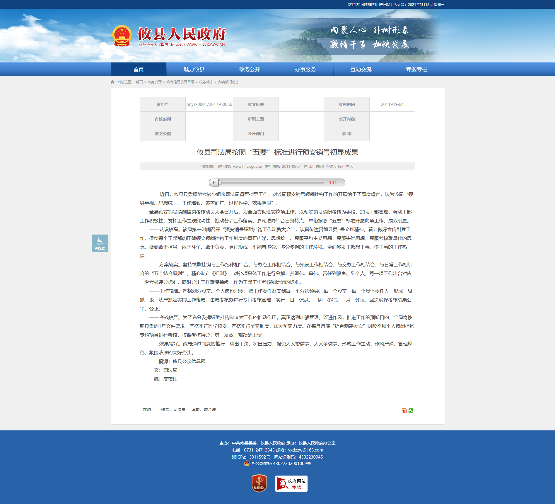 近日,攸县县委绩酬考核小组来司法局督查指导工作,对该局预安销号绩酬挂钩工作的开展给予了高度肯定,认为该局“领导重视、思想统一、工作细致、覆盖面广、过程科学、效果明显”。
