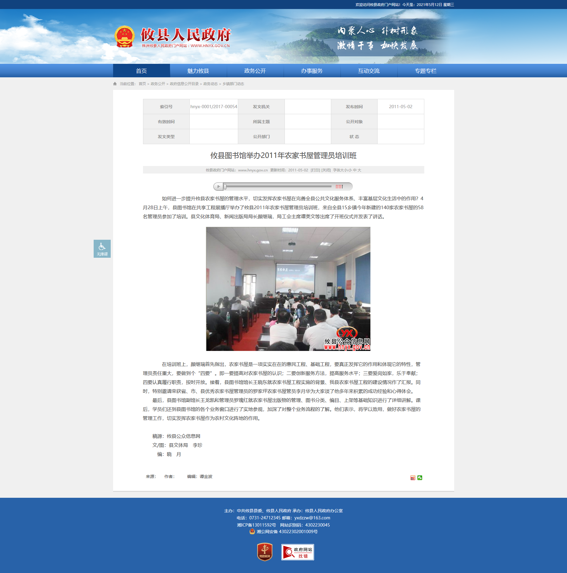 如何进一步提升攸县农家书屋的管理水平,切实发挥农家书屋在完善全县公共文化服务体系、丰富基层文化生活中的作用?4月28日上午,县图书馆在共享工程展播厅举办了攸县2011年农家书屋管理员培训班,来自全县15乡镇今年新建的140家农家书屋的58名管理员参加了培训。县文化体育局、新闻出版局局长颜继瑞,局工会主席谭美文等出席了开班仪式并发表了讲话。