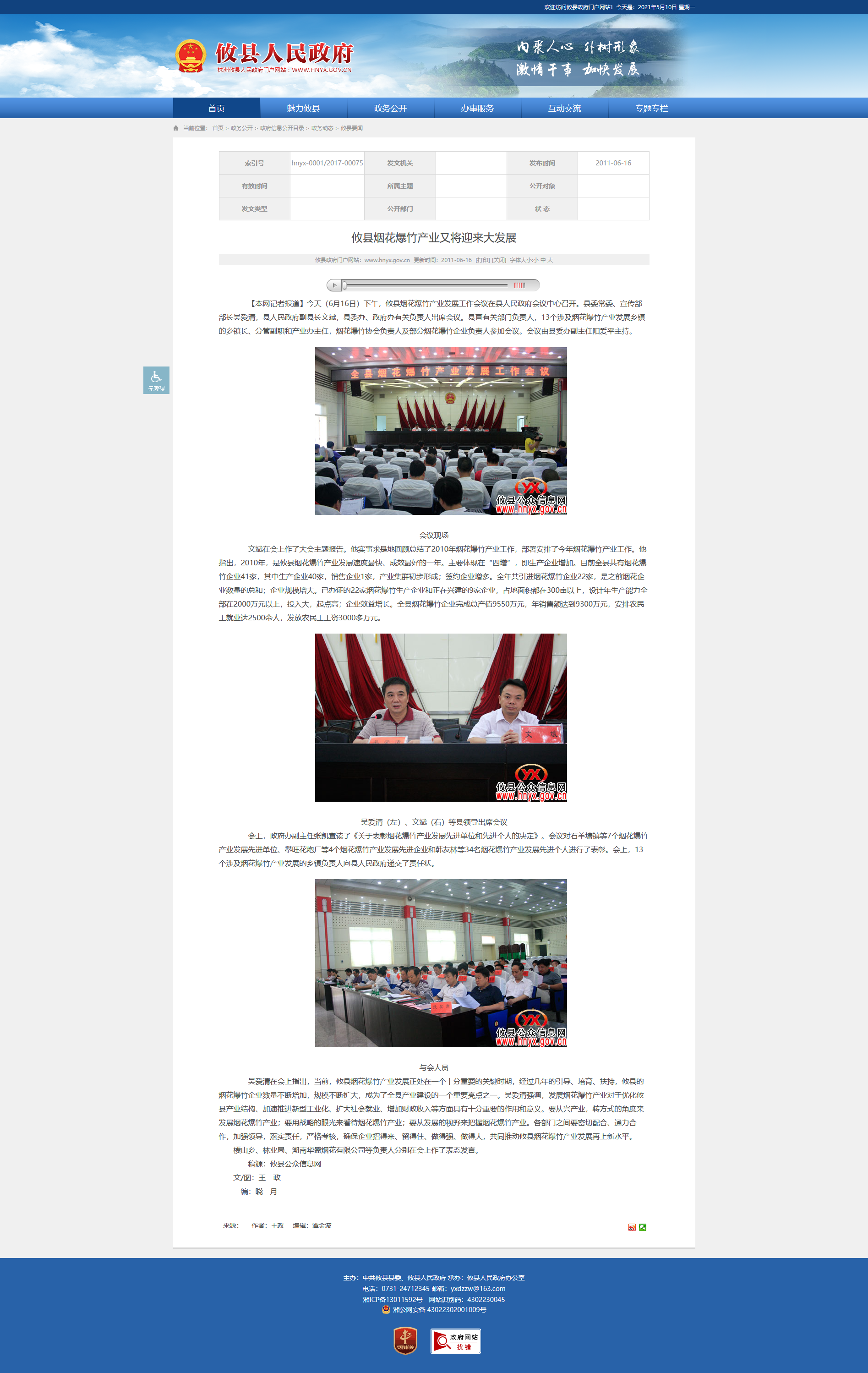 会上,政府办副主任张凯宣读了《关于表彰烟花爆竹产业发展先进单位和先进个人的决定》。会议对石羊塘镇等7个烟花爆竹产业发展先进单位、攀旺花炮厂等4个烟花爆竹产业发展先进企业和韩友林等34名烟花爆竹产业发展先进个人进行了表彰。会上,13个涉及烟花爆竹产业发展的乡镇负责人向县人民政府递交了责任状。