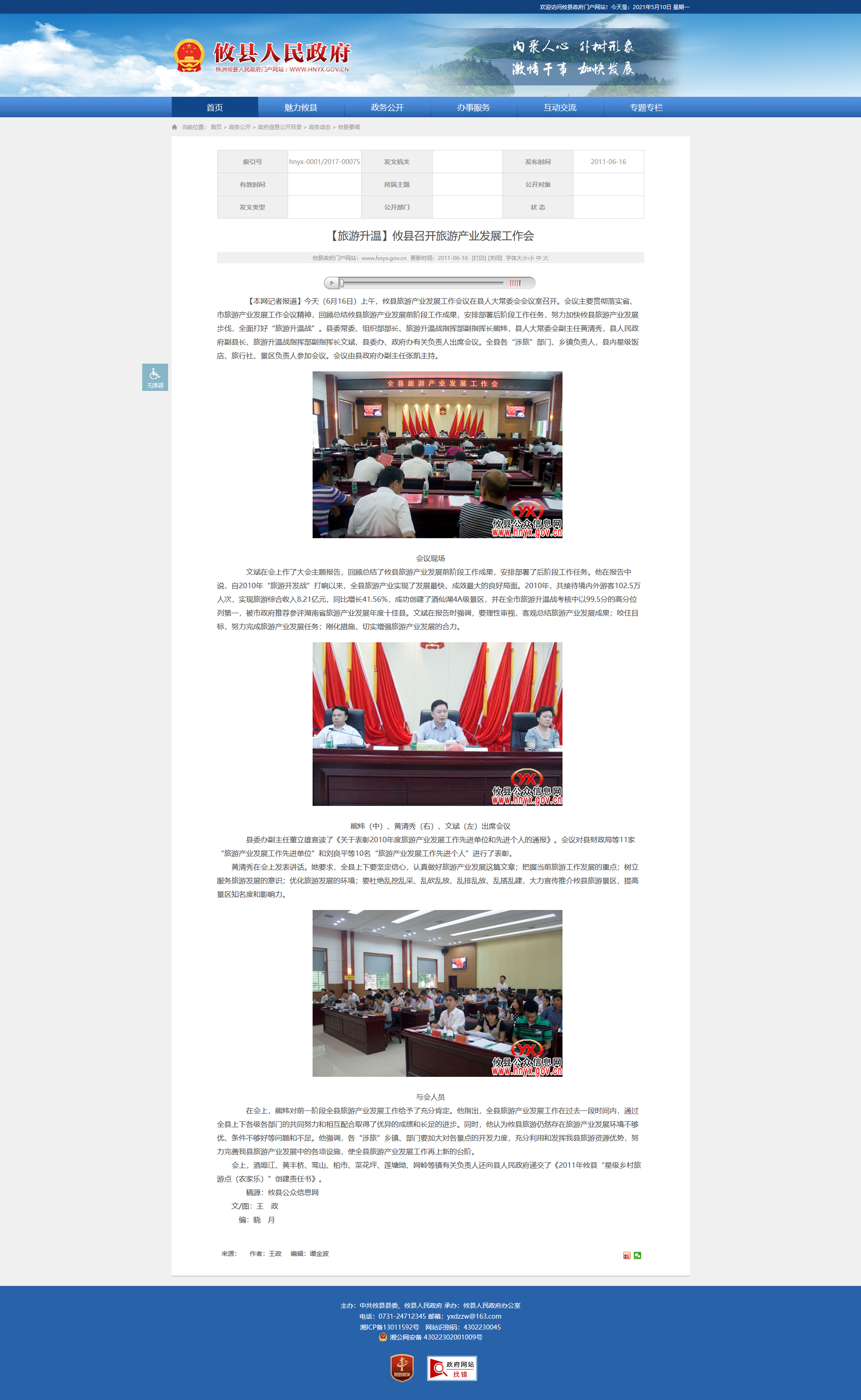 文斌在会上作了大会主题报告,回顾总结了攸县旅游产业发展前阶段工作成果,安排部署了后阶段工作任务。他在报告中说,自2010年“旅游开发战”打响以来,全县旅游产业实现了发展最快、成效最大的良好局面。2010年,共接待境内外游客102.5万人次,实现旅游综合收入8.21亿元,同比增长41.56%,成功创建了酒仙湖4A级景区,并在全市旅游升温战考核中以99.5分的高分位列第一,被市政府推荐参评湖南省旅游产业发展年度十佳县。文斌在报告时强调,要理性审视,客观总结旅游产业发展成果;咬住目标,努力完成旅游产业发展任务;刚化措施,切实增强旅游产业发展的合力。