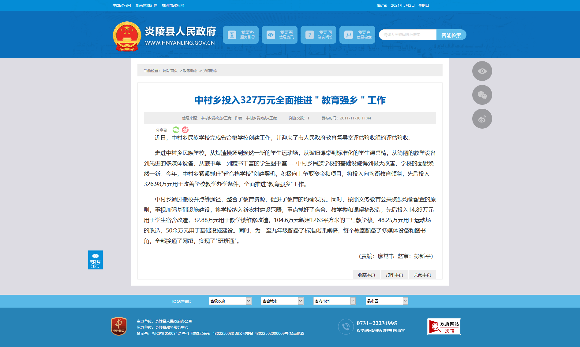 走进中村乡民族学校,从煤渣操场到焕然一新的学生运动场,从破旧课桌到标准化的学生课桌椅,从简陋的教学设备到先进的多媒体设备,从藏书单一到藏书丰富的学生图书室……中村乡民族学校的基础设施得到极大改善,学校的面貌焕然一新。今年,中村乡紧紧抓住"省合格学校"创建契机,积极向上争取资金和项目,将投入向均衡教育倾斜,先后投入326.98万元用于改善学校教学办学条件,全面推进"教育强乡"工作。
