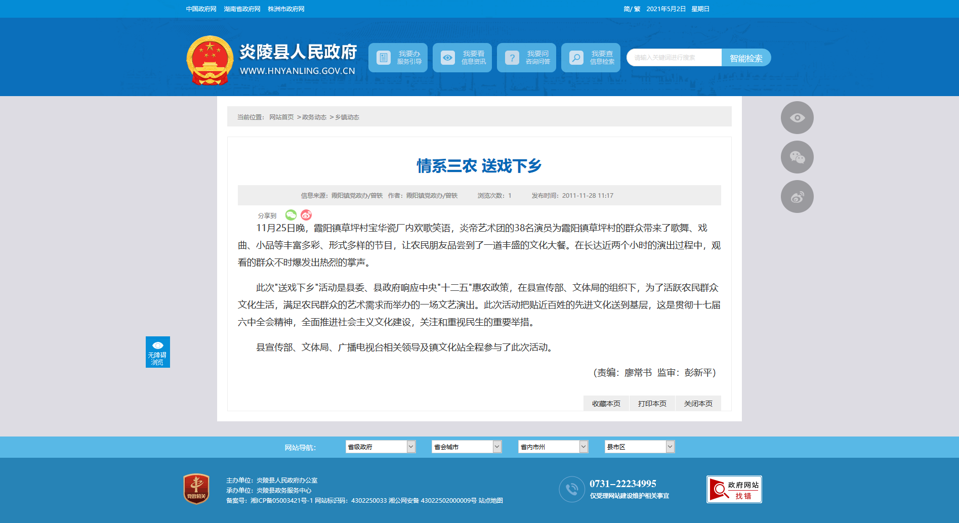 此次"送戏下乡"活动是县委、县政府响应中央"十二五"惠农政策,在县宣传部、文体局的组织下,为了活跃农民群众文化生活,满足农民群众的艺术需求而举办的一场文艺演出。此次活动把贴近百姓的先进文化送到基层,这是贯彻十七届六中全会精神,全面推进社会主义文化建设,关注和重视民生的重要举措。