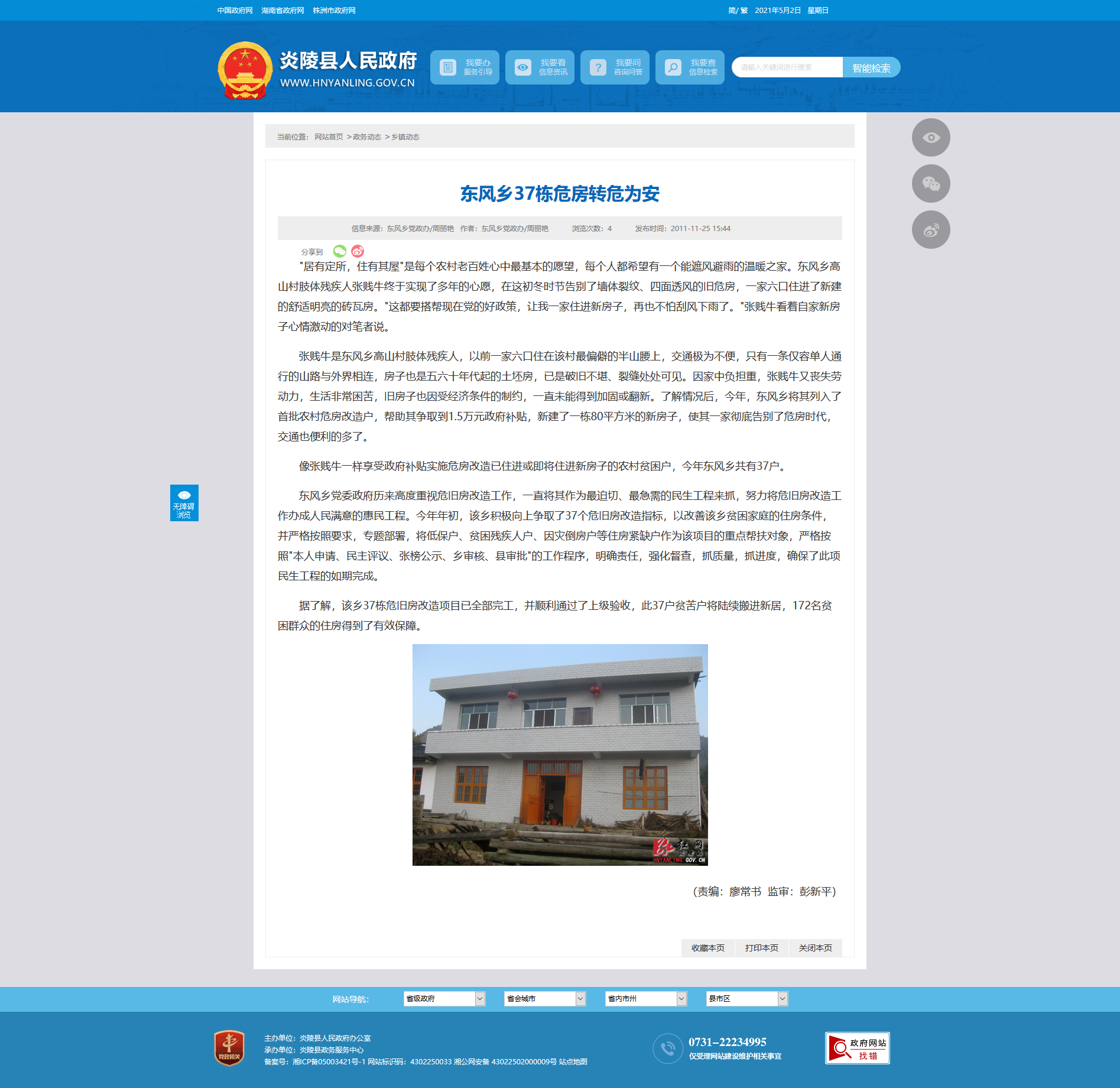 像张贱牛一样享受政府补贴实施危房改造已住进或即将住进新房子的农村贫困户,今年东风乡共有37户。