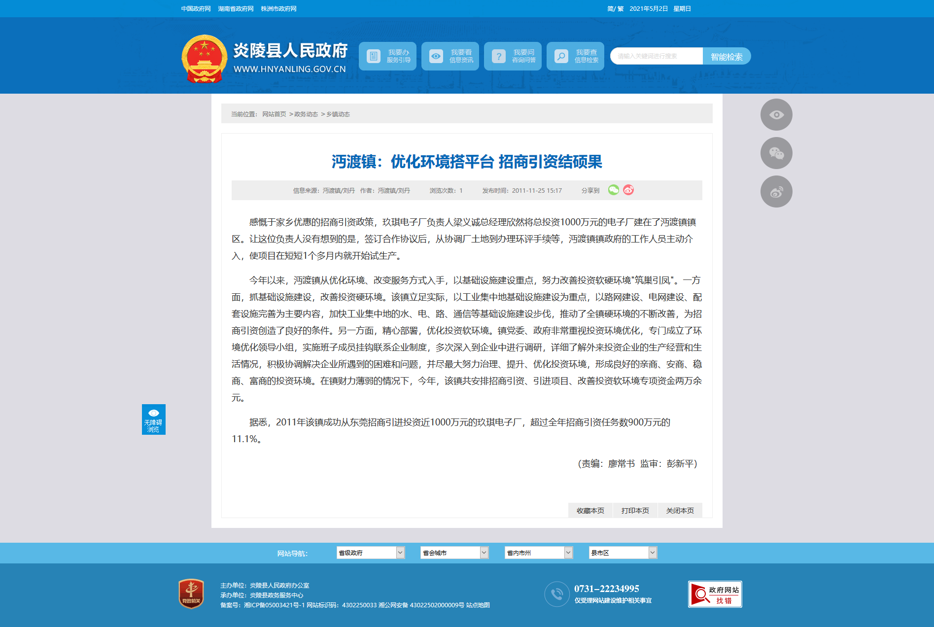 据悉,2011年该镇成功从东莞招商引进投资近1000万元的玖琪电子厂,超过全年招商引资任务数900万元的11.1%。