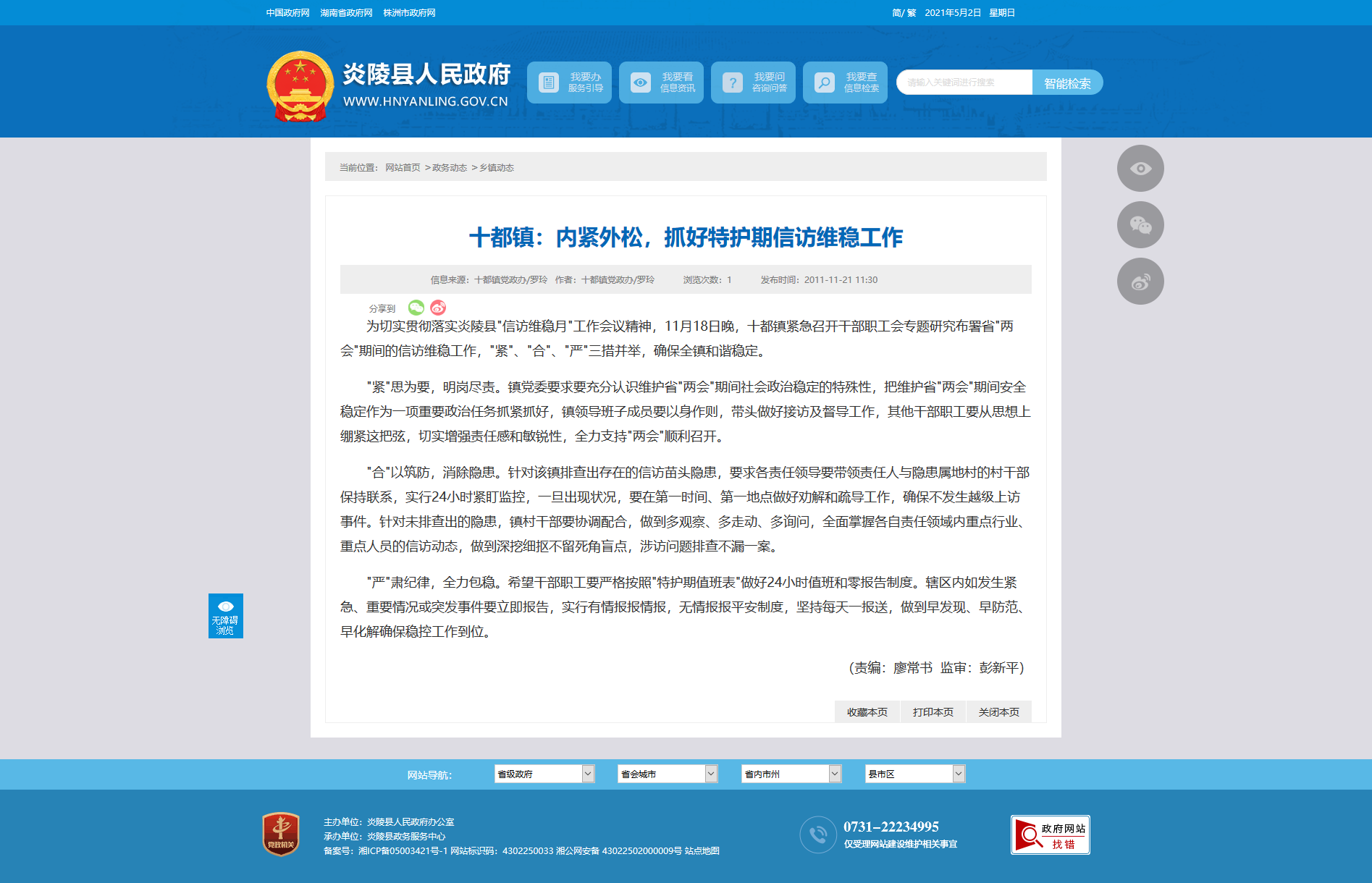 为切实贯彻落实炎陵县"信访维稳月"工作会议精神,11月18日晚,十都镇紧急召开干部职工会专题研究布署省"两会"期间的信访维稳工作,"紧"、"合"、"严"三措并举,确保全镇和谐稳定。