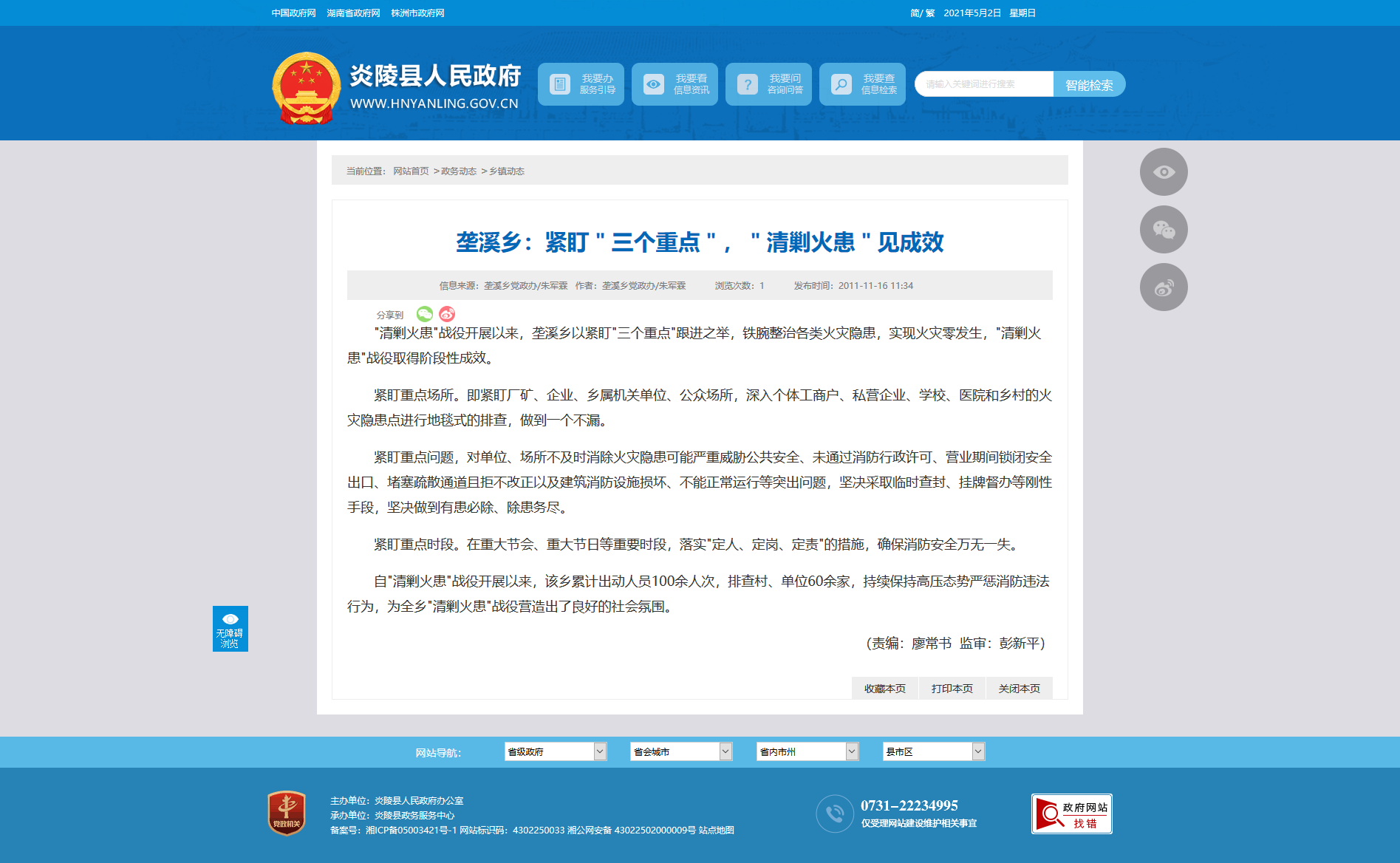 "清剿火患"战役开展以来,垄溪乡以紧盯"三个重点"跟进之举,铁腕整治各类火灾隐患,实现火灾零发生,"清剿火患"战役取得阶段性成效。