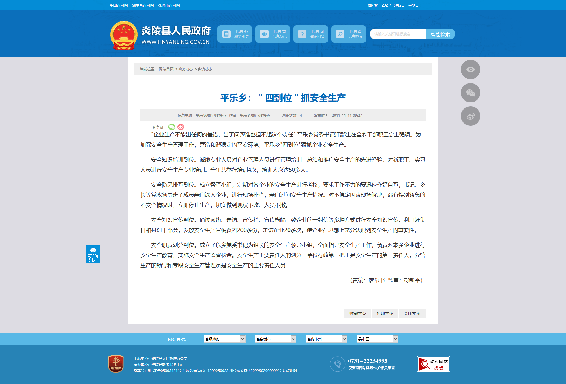 "企业生产不能出任何的差错,出了问题谁也担不起这个责任" 平乐乡党委书记江酃生在全乡干部职工会上强调。为加强安全生产管理工作,营造和谐稳定的平安环境,平乐乡"四到位"狠抓企业安全生产。