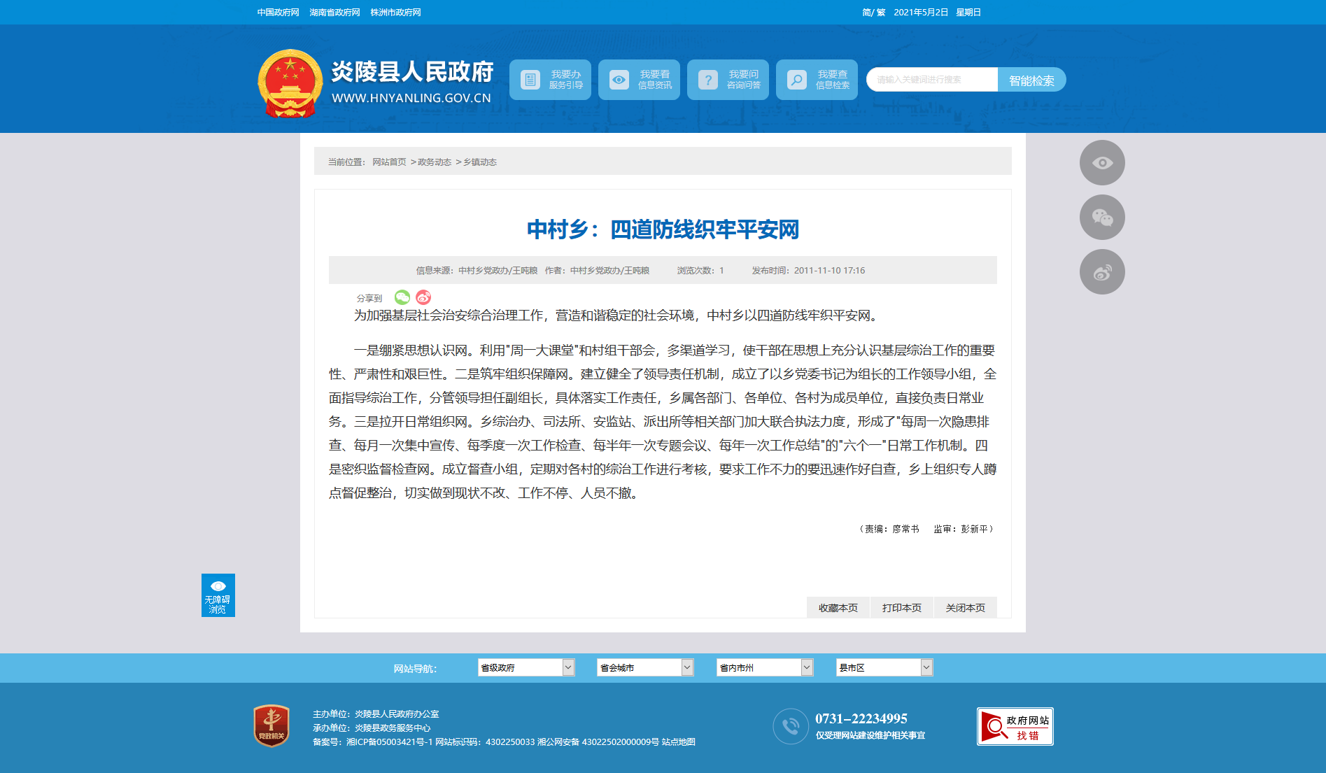 为加强基层社会治安综合治理工作,营造和谐稳定的社会环境,中村乡以四道防线牢织平安网。