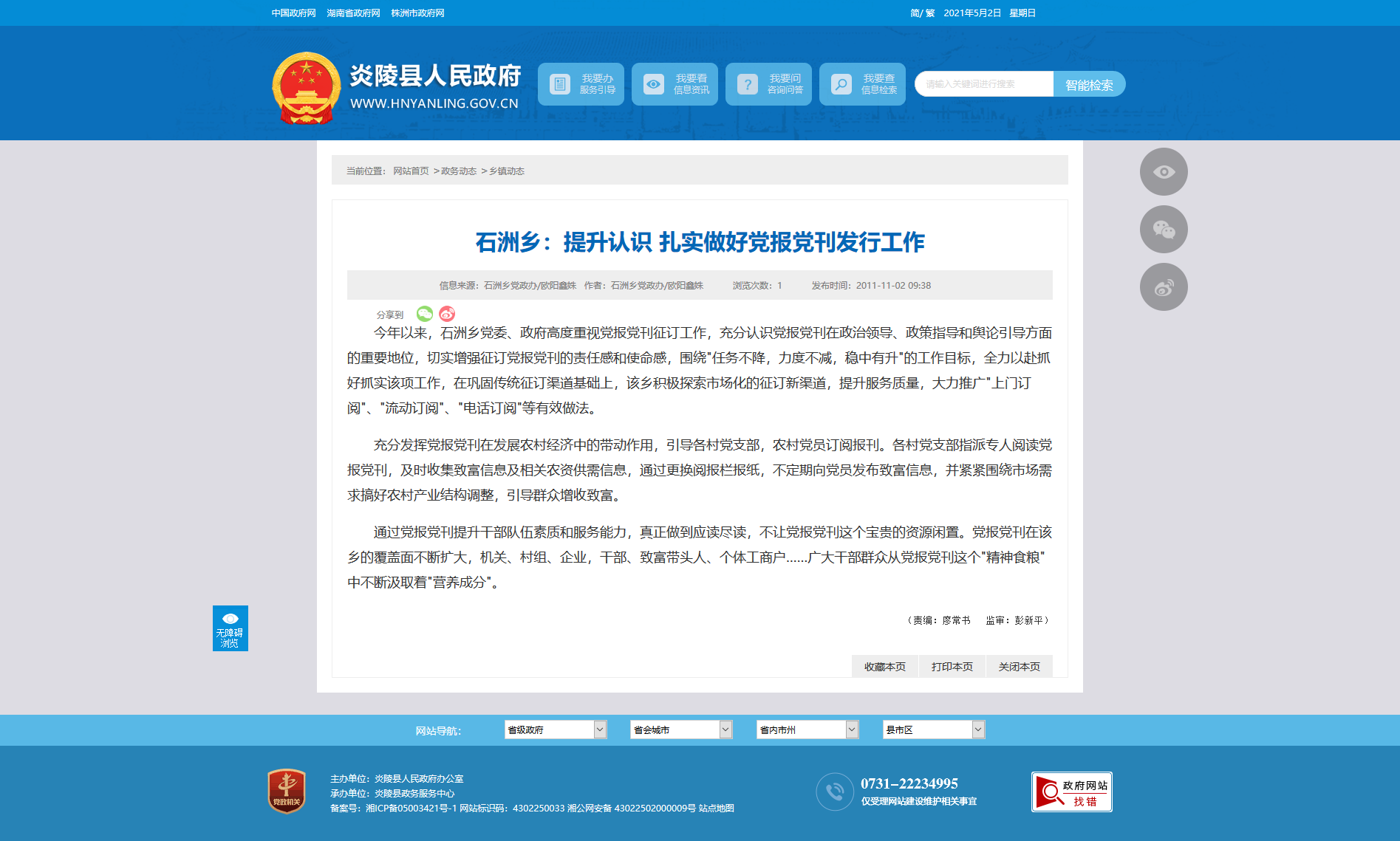 今年以来,石洲乡党委、政府高度重视党报党刊征订工作,充分认识党报党刊在政治领导、政策指导和舆论引导方面的重要地位,切实增强征订党报党刊的责任感和使命感,围绕"任务不降,力度不减,稳中有升"的工作目标,全力以赴抓好抓实该项工作,在巩固传统征订渠道基础上,该乡积极探索市场化的征订新渠道,提升服务质量,大力推广"上门订阅"、"流动订阅"、"电话订阅"等有效做法。