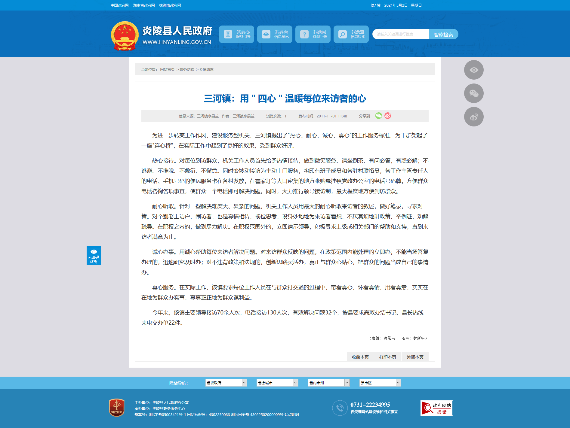 为进一步转变工作作风,建设服务型机关,三河镇提出了"热心、耐心、诚心、真心"的工作服务标准,为干群架起了一座"连心桥",在实际工作中起到了良好的效果,受到群众好评。