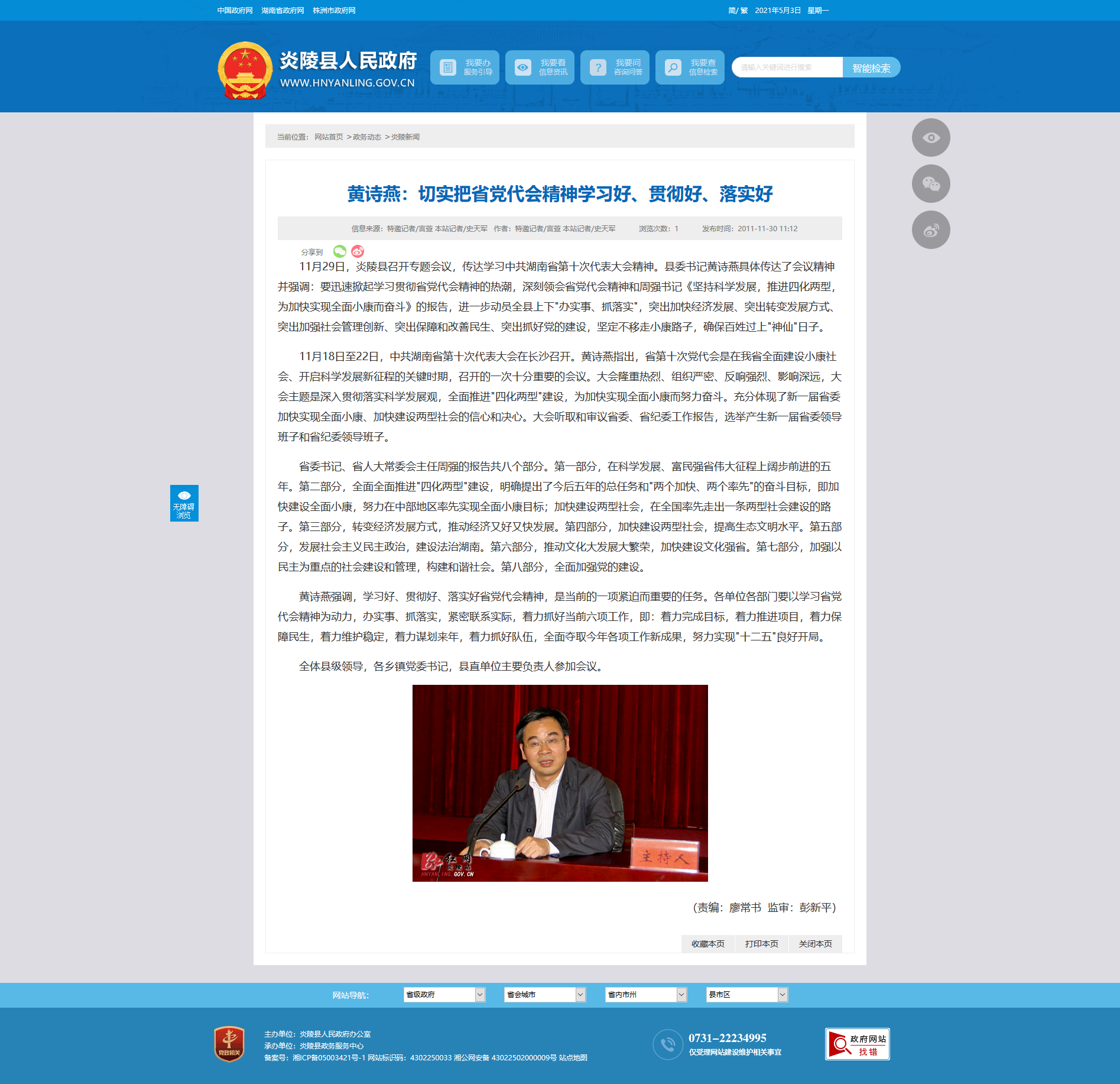11月29日,炎陵县召开专题会议,传达学习中共湖南省第十次代表大会精神。县委书记黄诗燕具体传达了会议精神并强调:要迅速掀起学习贯彻省党代会精神的热潮,深刻领会省党代会精神和周强书记《坚持科学发展,推进四化两型,为加快实现全面小康而奋斗》的报告,进一步动员全县上下"办实事、抓落实",突出加快经济发展、突出转变发展方式、突出加强社会管理创新、突出保障和改善民生、突出抓好党的建设,坚定不移走小康路子,确保百姓过上"神仙"日子。