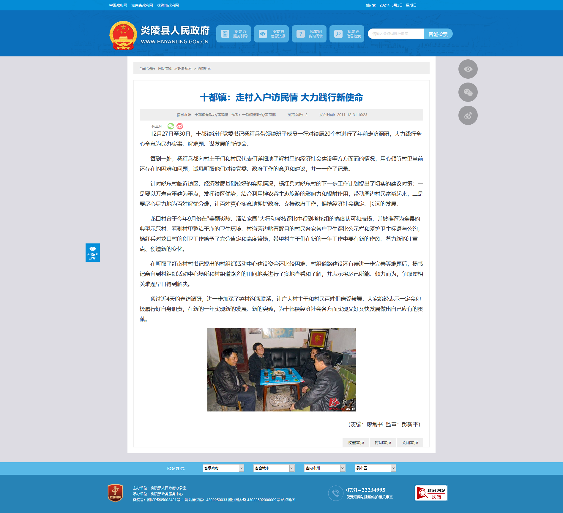 12月27日至30日,十都镇新任党委书记杨红兵带领镇班子成员一行对镇属20个村进行了年前走访调研,大力践行全心全意为民办实事、解难题、谋发展的新使命。