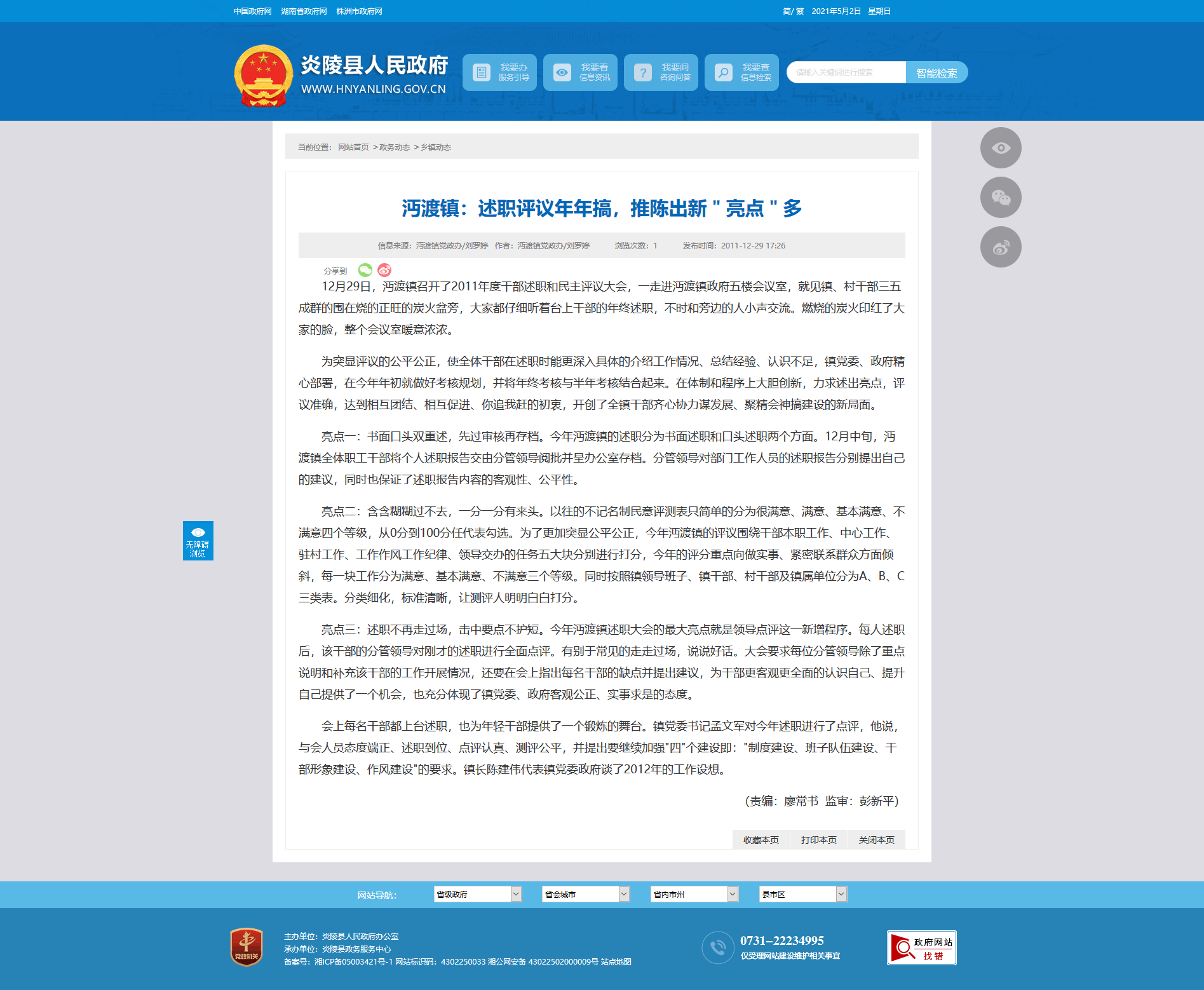 为突显评议的公平公正,使全体干部在述职时能更深入具体的介绍工作情况、总结经验、认识不足,镇党委、政府精心部署,在今年年初就做好考核规划,并将年终考核与半年考核结合起来。在体制和程序上大胆创新,力求述出亮点,评议准确,达到相互团结、相互促进、你追我赶的初衷,开创了全镇干部齐心协力谋发展、聚精会神搞建设的新局面。