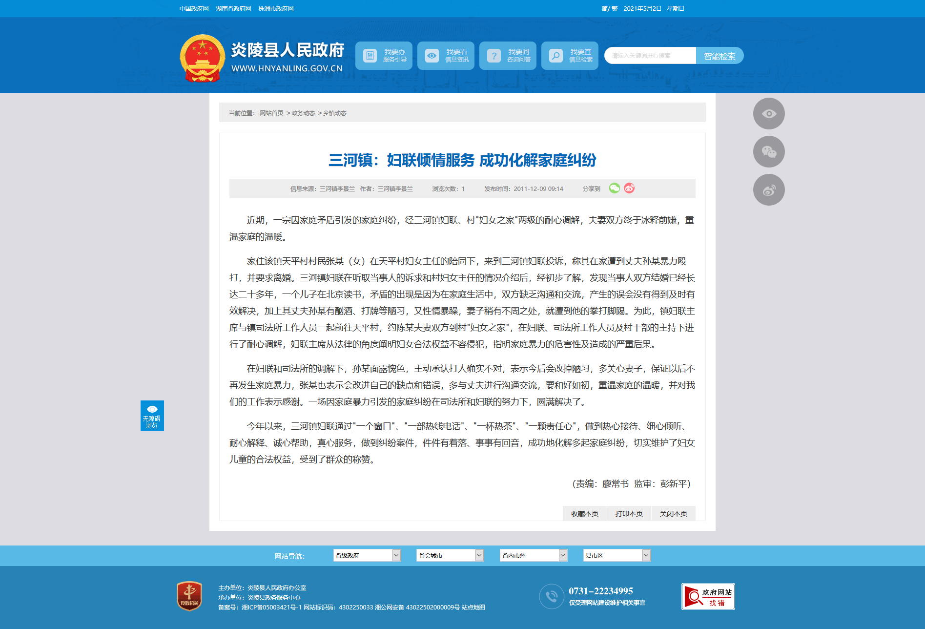 近期,一宗因家庭矛盾引发的家庭纠纷,经三河镇妇联、村"妇女之家"两级的耐心调解,夫妻双方终于冰释前嫌,重温家庭的温暖。