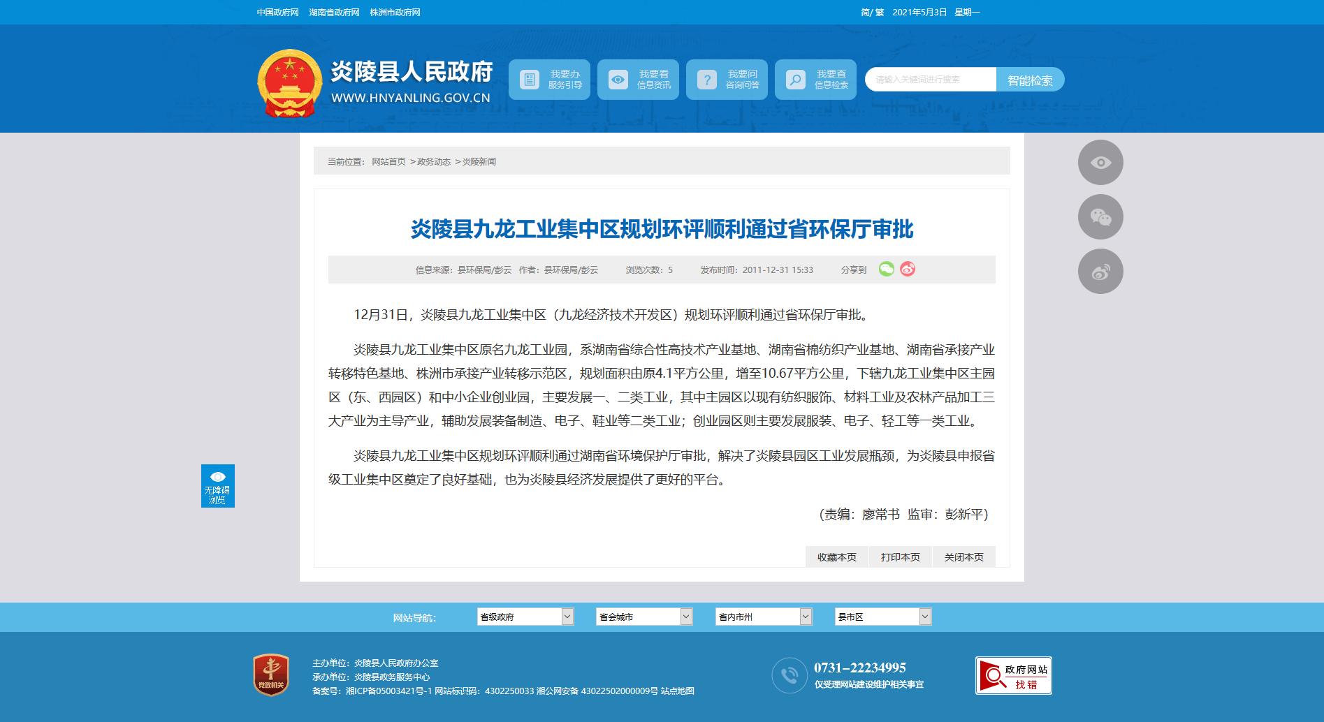 12月31日,炎陵县九龙工业集中区(九龙经济技术开发区)规划环评顺利通过省环保厅审批。