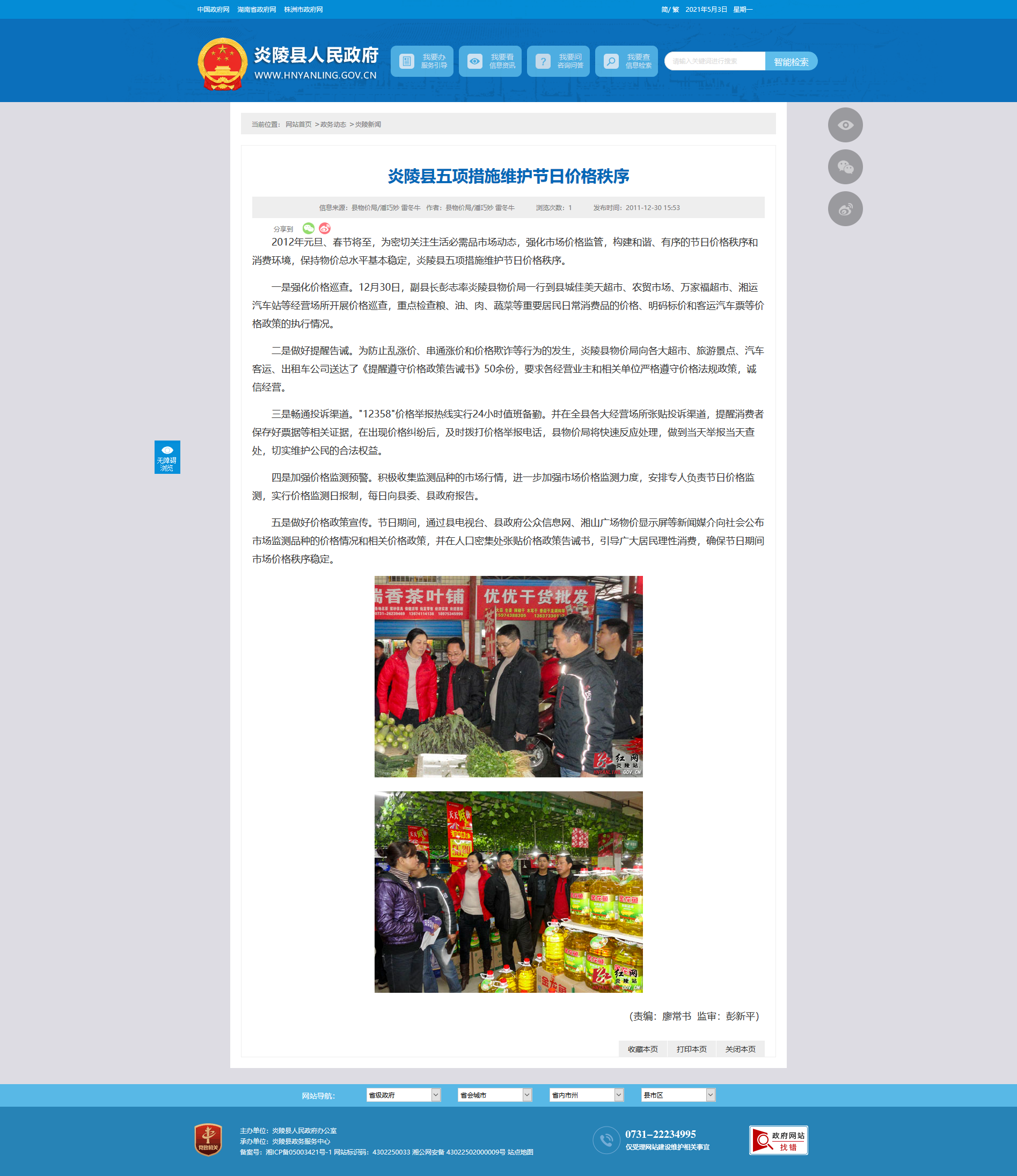 五是做好价格政策宣传。节日期间,通过县电视台、县政府公众信息网、湘山广场物价显示屏等新闻媒介向社会公布市场监测品种的价格情况和相关价格政策,并在人口密集处张贴价格政策告诫书,引导广大居民理性消费,确保节日期间市场价格秩序稳定。