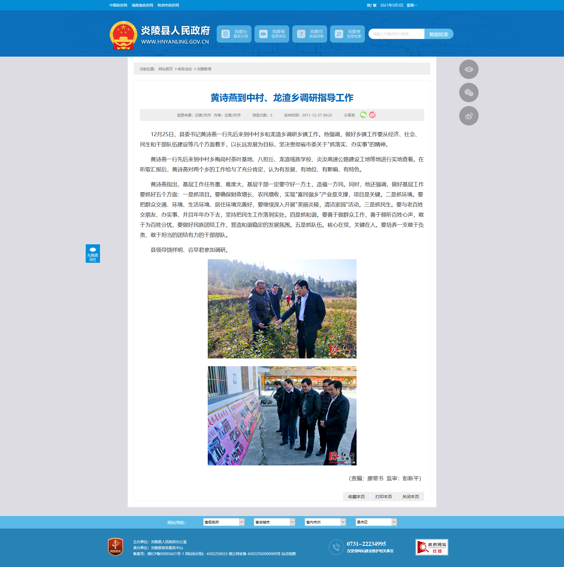 黄诗燕指出,基层工作任务重、难度大,基层干部一定要守好一方土,造福一方民。同时,他还强调,做好基层工作要抓好五个方面:一是抓项目。要确保财政增长、农民增收,实现"富民强乡"产业是支撑,项目是关键。二是抓环境。要把群众交通、环境、生活环境、居住环境完善好,要继续深入开展"美丽炎陵,清洁家园"活动。三是抓民生。要与老百姓交朋友、办实事、并且年年办下去,坚持把民生工作落到实处。四是抓和谐。要善于做群众工作,善于倾听百姓心声,敢于为百姓分忧,要做好民族团结工作,营造和谐稳定的发展氛围。五是抓队伍。核心在党,关键在人。要培养一支敢于负责、敢于担当的团结有力的干部部队。