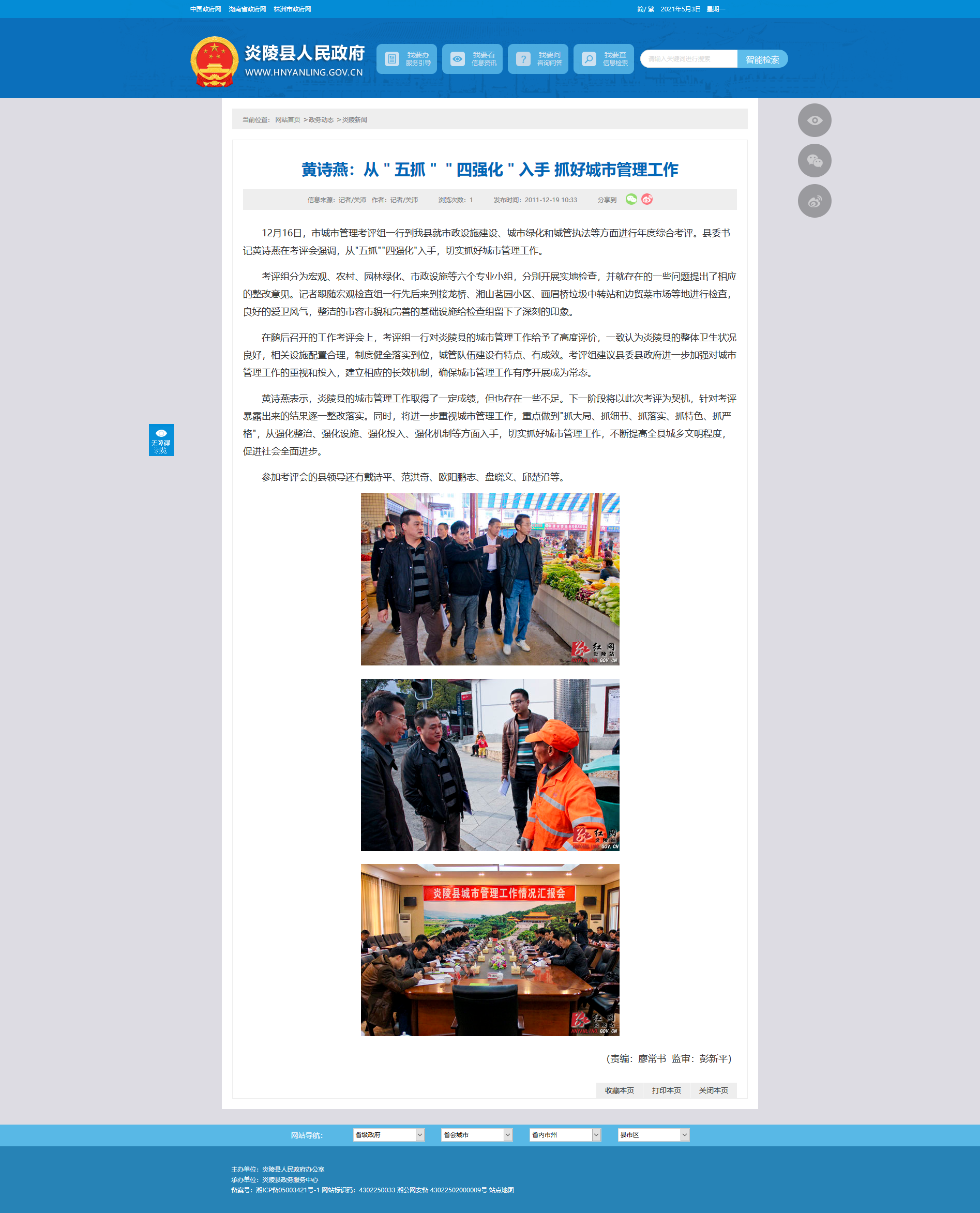 在随后召开的工作考评会上,考评组一行对炎陵县的城市管理工作给予了高度评价,一致认为炎陵县的整体卫生状况良好,相关设施配置合理,制度健全落实到位,城管队伍建设有特点、有成效。考评组建议县委县政府进一步加强对城市管理工作的重视和投入,建立相应的长效机制,确保城市管理工作有序开展成为常态。