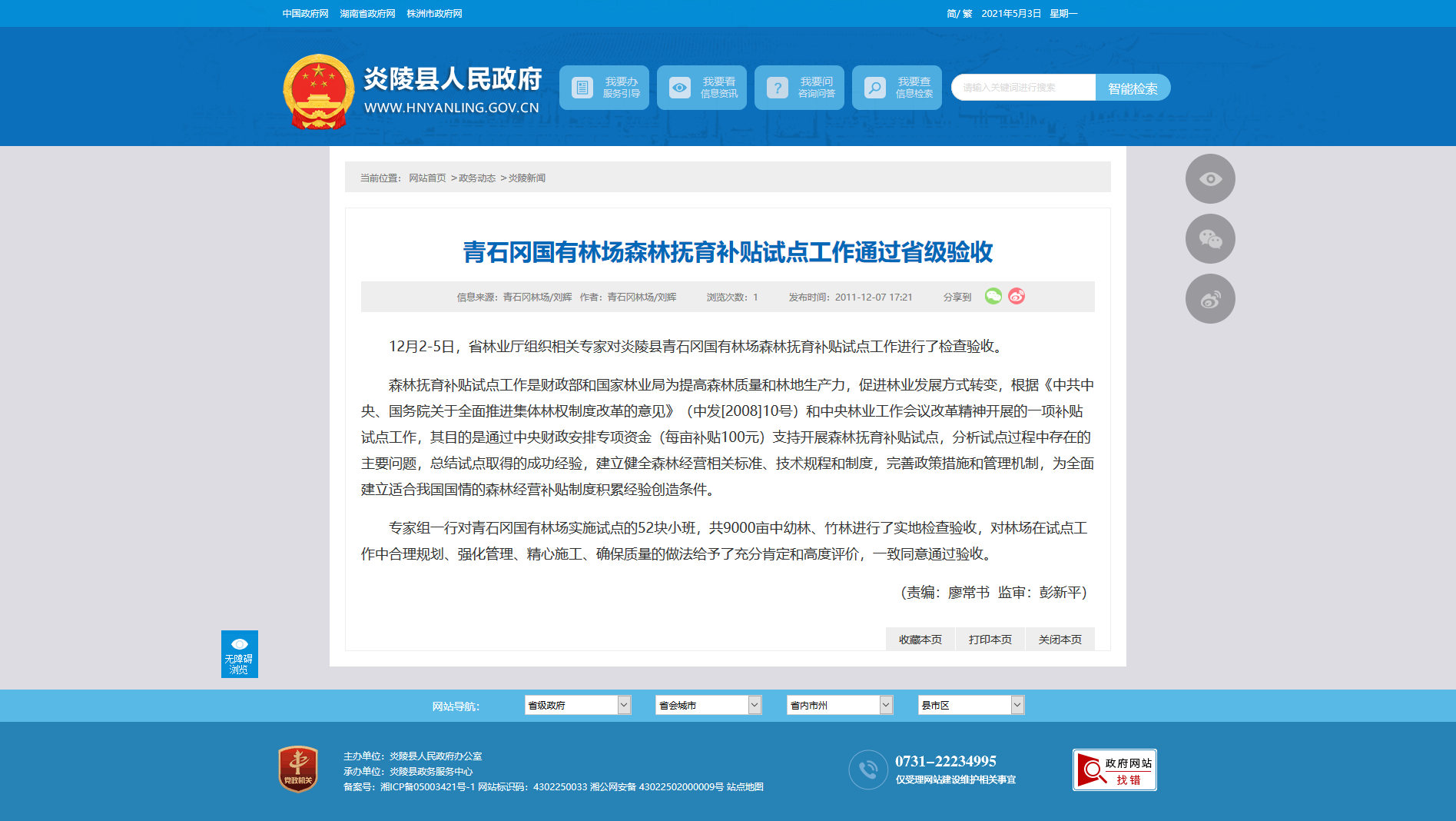 12月2-5日,省林业厅组织相关专家对炎陵县青石冈国有林场森林抚育补贴试点工作进行了检查验收。