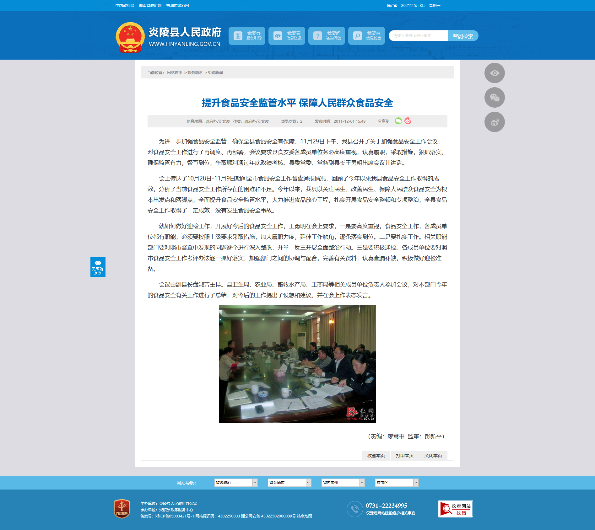 为进一步加强食品安全监管,确保全县食品安全有保障,11月29日下午,我县召开了关于加强食品安全工作会议,对食品安全工作进行了再调度、再部署,会议要求县食安委各成员单位务必高度重视,认真履职,采取措施,狠抓落实,确保监管有力,督查到位,争取顺利通过年底政绩考核。县委常委、常务副县长王勇明出席会议并讲话。