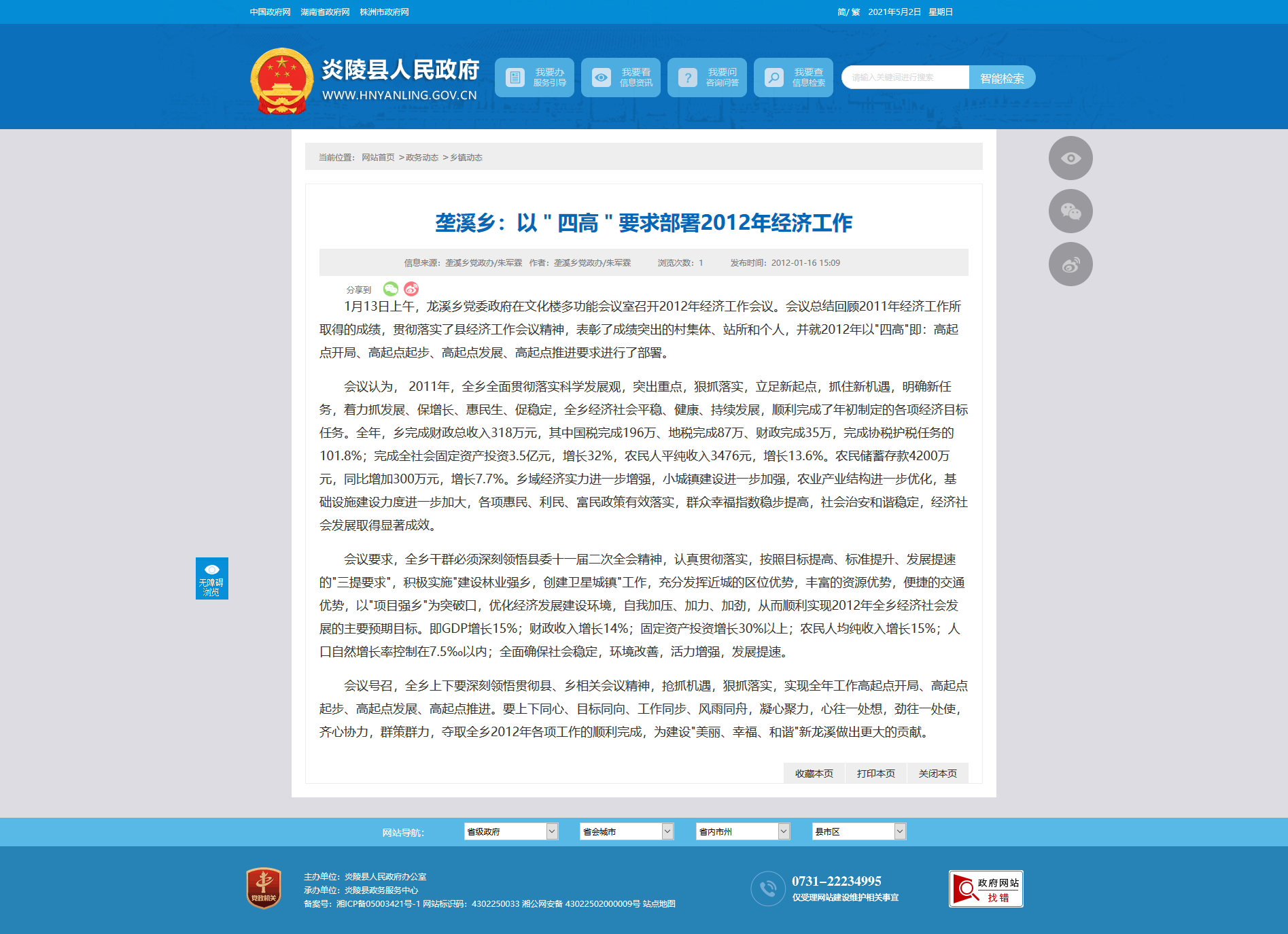 1月13日上午,龙溪乡党委政府在文化楼多功能会议室召开2012年经济工作会议。会议总结回顾2011年经济工作所取得的成绩,贯彻落实了县经济工作会议精神,表彰了成绩突出的村集体、站所和个人,并就2012年以"四高"即:高起点开局、高起点起步、高起点发展、高起点推进要求进行了部署。