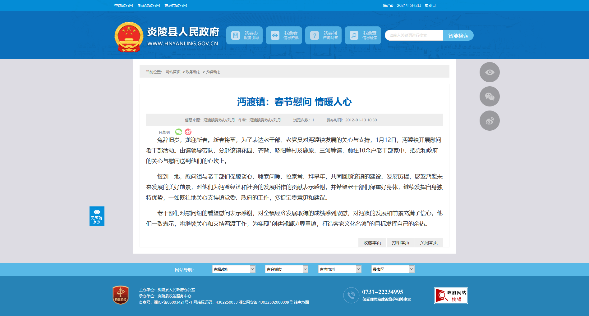 每到一地,慰问组与老干部们促膝谈心、嘘寒问暖、拉家常、拜早年,共同回顾该镇的建设、发展历程,展望沔渡未来发展的美好前景,对他们为沔渡经济和社会的发展所作的贡献表示感谢,并希望老干部们保重好身体,继续发挥自身独特优势,一如既往地关心支持镇党委、政府的工作,多提宝贵意见和建议。