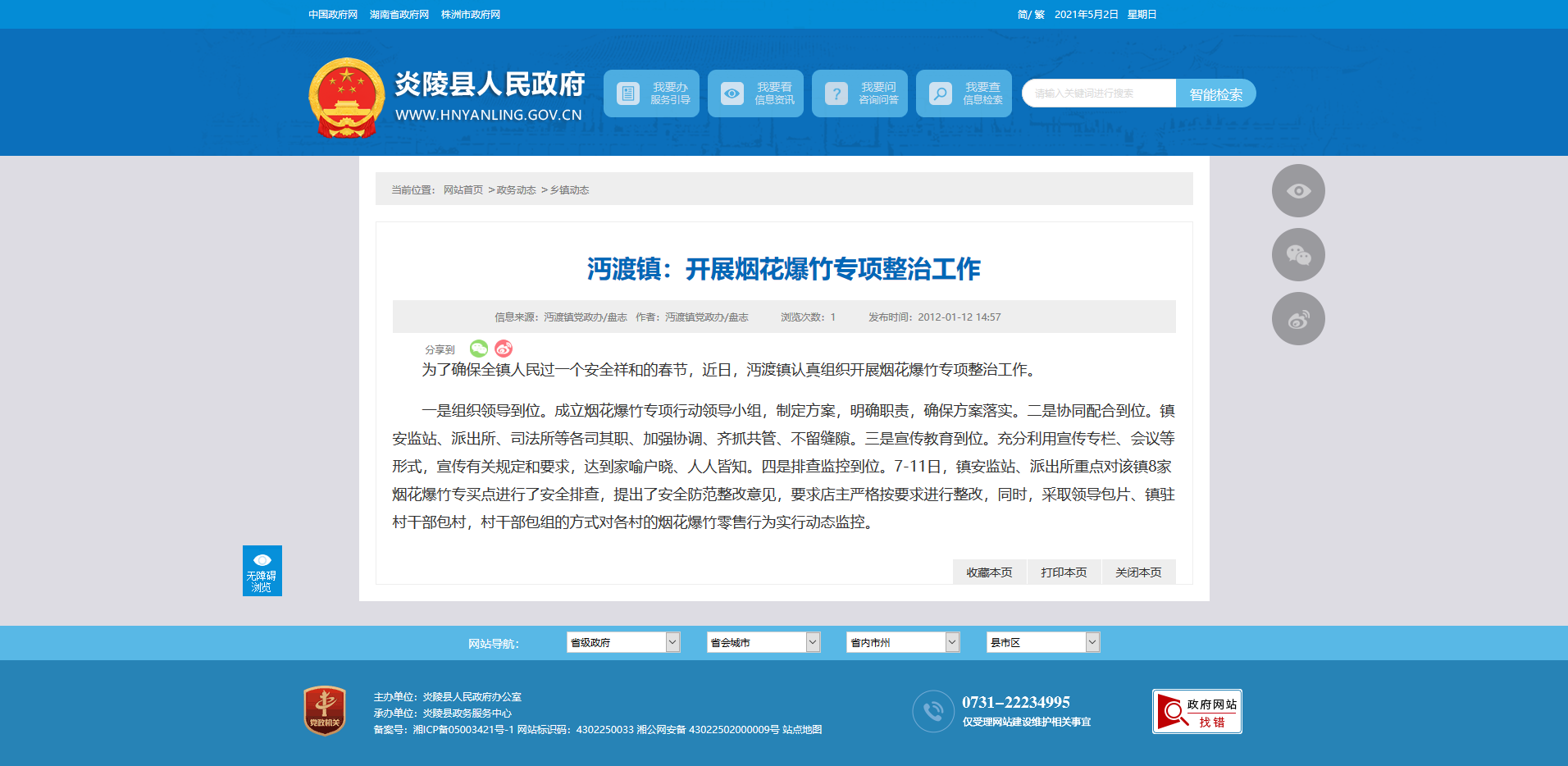 为了确保全镇人民过一个安全祥和的春节,近日,沔渡镇认真组织开展烟花爆竹专项整治工作。