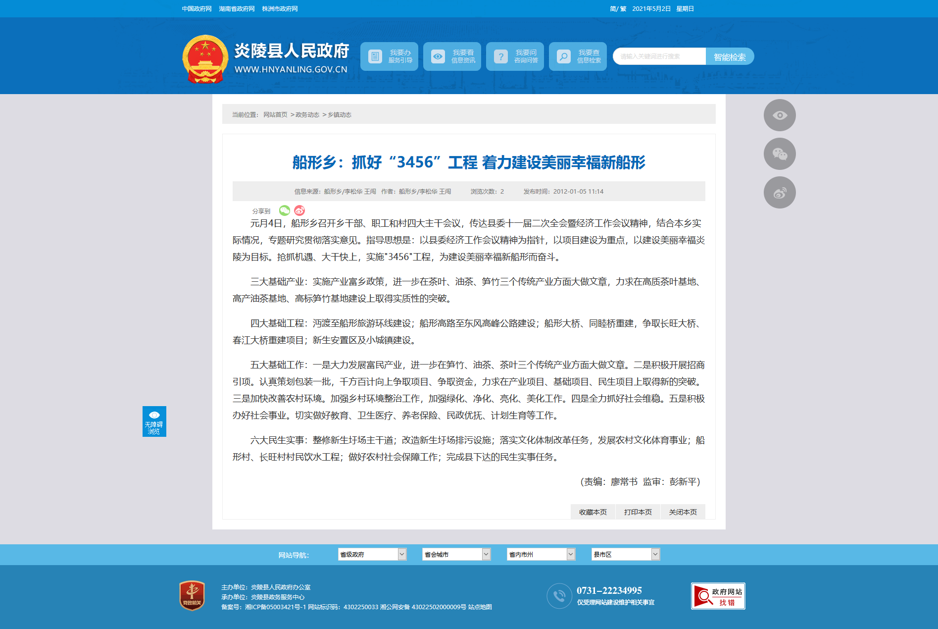 元月4日,船形乡召开乡干部、职工和村四大主干会议,传达县委十一届二次全会暨经济工作会议精神,结合本乡实际情况,专题研究贯彻落实意见。指导思想是:以县委经济工作会议精神为指针,以项目建设为重点,以建设美丽幸福炎陵为目标。抢抓机遇、大干快上,实施"3456"工程,为建设美丽幸福新船形而奋斗。