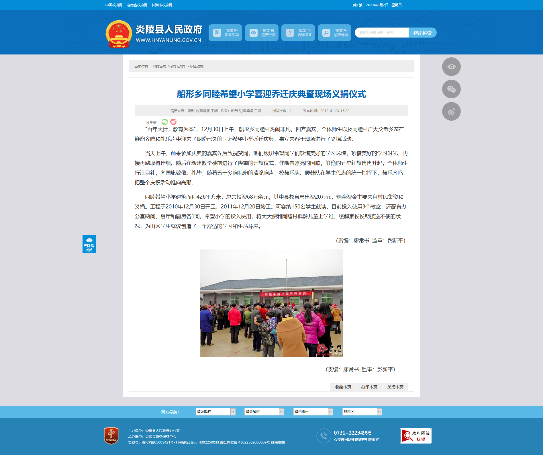 "百年大计,教育为本",12月30日上午,船形乡同睦村热闹非凡,四方嘉宾、全体师生以及同睦村广大父老乡亲在鞭炮齐鸣和礼乐声中迎来了期盼已久的同睦希望小学乔迁庆典,嘉宾来客于现场进行了义捐活动。