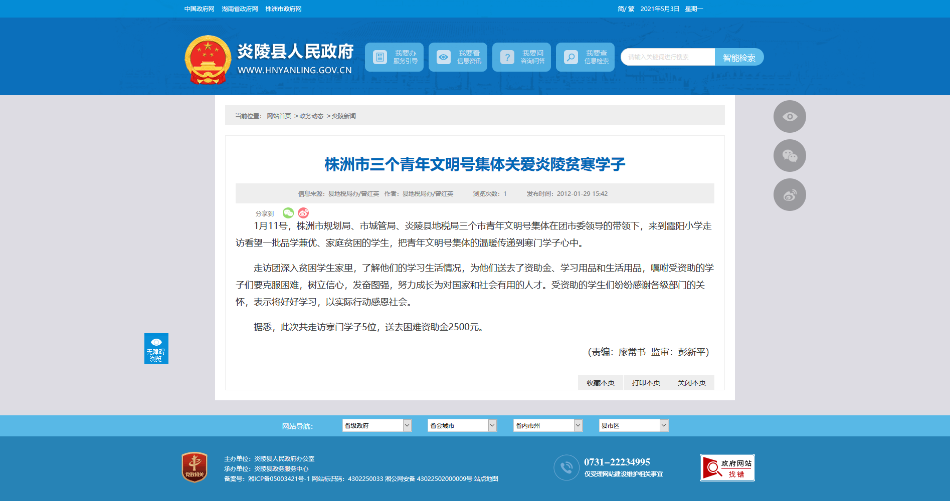 1月11号,株洲市规划局、市城管局、炎陵县地税局三个市青年文明号集体在团市委领导的带领下,来到霞阳小学走访看望一批品学兼优、家庭贫困的学生,把青年文明号集体的温暖传递到寒门学子心中。