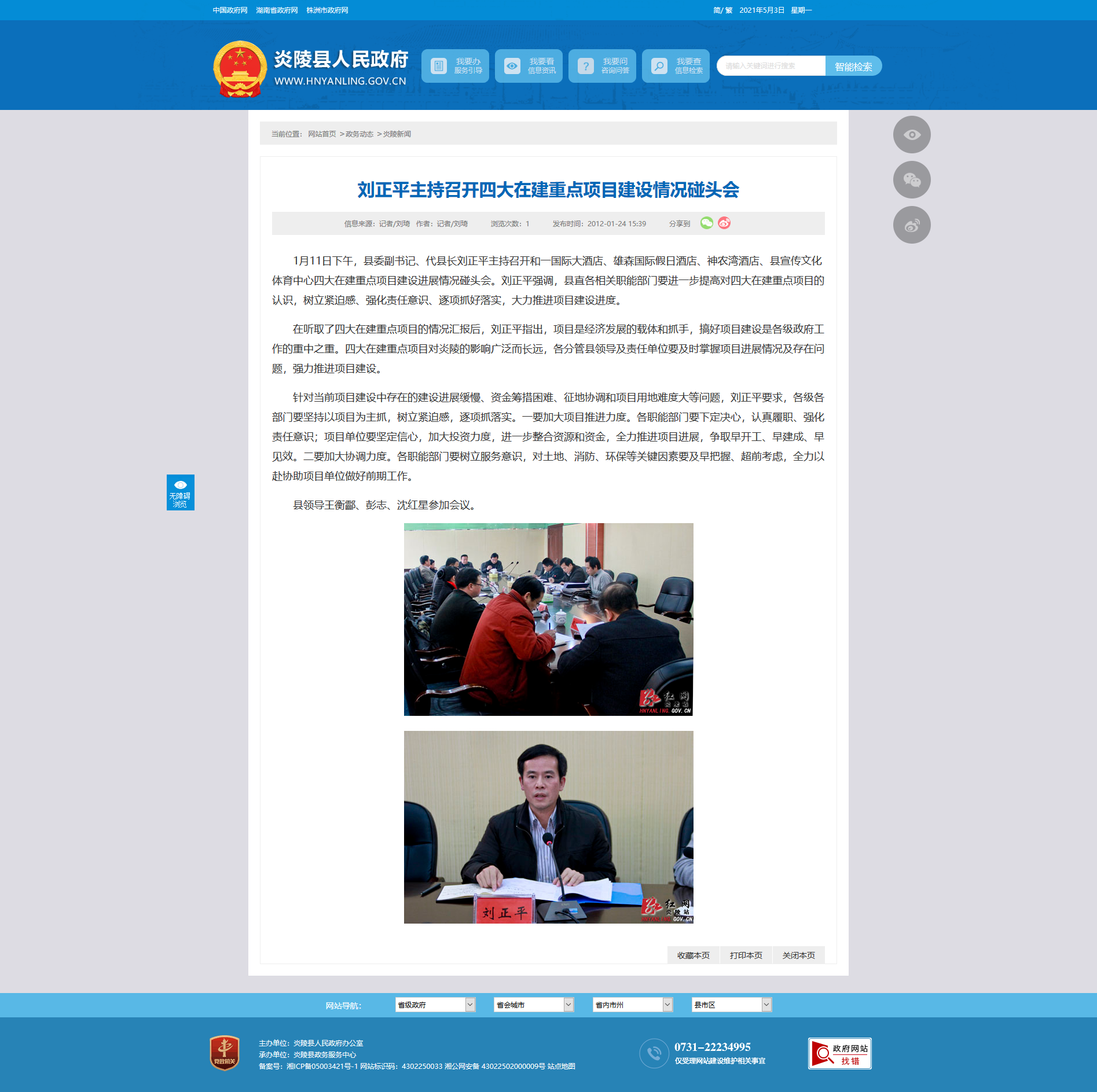 在听取了四大在建重点项目的情况汇报后,刘正平指出,项目是经济发展的载体和抓手,搞好项目建设是各级政府工作的重中之重。四大在建重点项目对炎陵的影响广泛而长远,各分管县领导及责任单位要及时掌握项目进展情况及存在问题,强力推进项目建设。