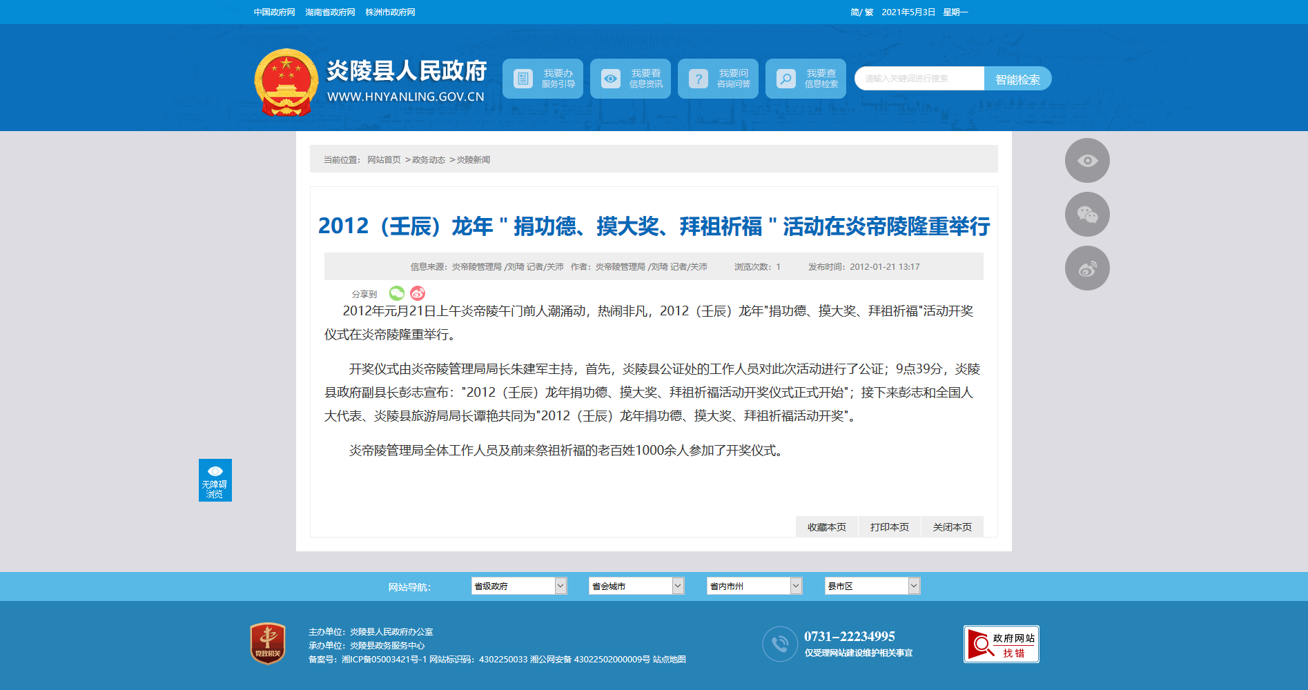 2012年元月21日上午炎帝陵午门前人潮涌动,热闹非凡,2012(壬辰)龙年"捐功德、摸大奖、拜祖祈福"活动开奖仪式在炎帝陵隆重举行。