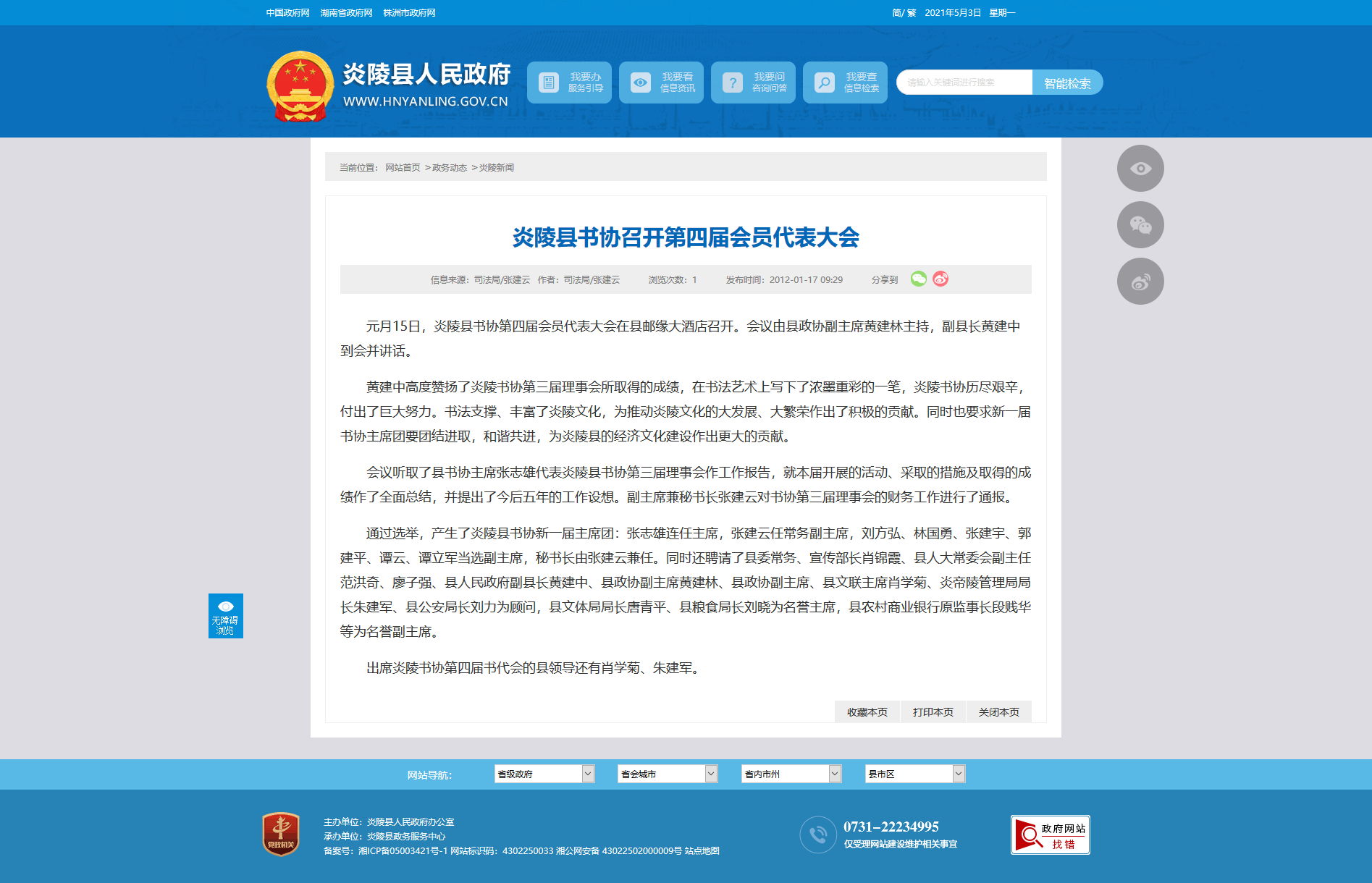 元月15日,炎陵县书协第四届会员代表大会在县邮缘大酒店召开。会议由县政协副主席黄建林主持,副县长黄建中到会并讲话。