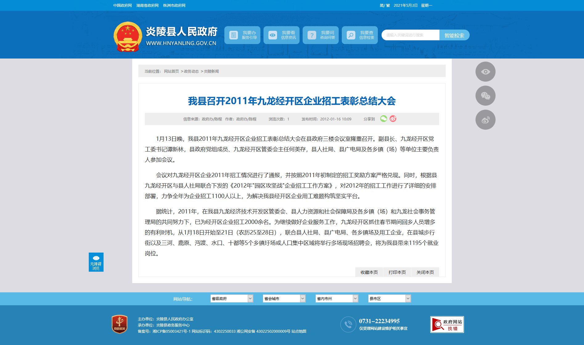 1月13日晚,我县2011年九龙经开区企业招工表彰总结大会在县政府三楼会议室隆重召开。副县长、九龙经开区党工委书记谭新林,县政府党组成员、九龙经开区管委会主任何美存,县人社局、县广电局及各乡镇(场)等单位主要负责人参加会议。