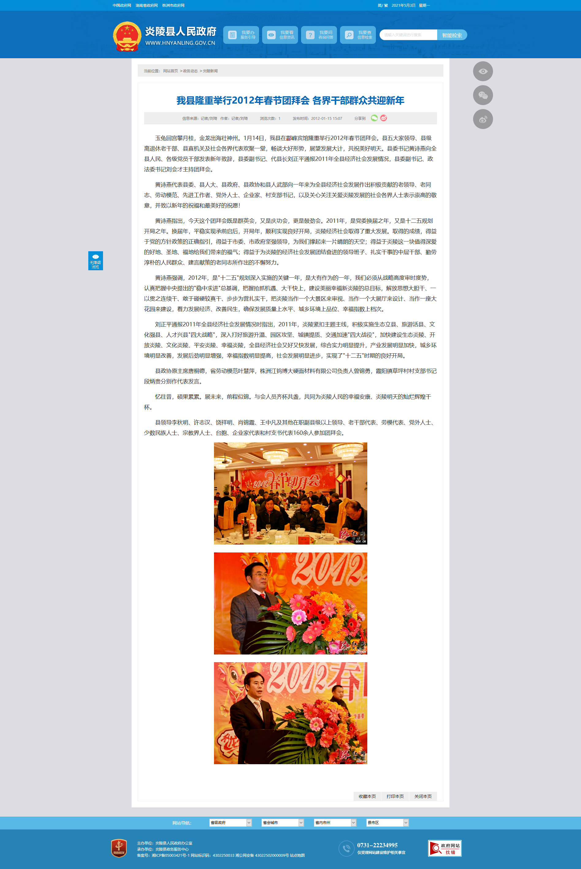 玉兔回宫攀月桂,金龙出海壮神州。1月14日,我县在酃峰宾馆隆重举行2012年春节团拜会。县五大家领导、县级离退休老干部、县直机关及社会各界代表欢聚一堂,畅谈大好形势,展望发展大计,共祝美好明天。县委书记黄诗燕向全县人民、各级党员干部发表新年致辞,县委副书记、代县长刘正平通报2011年全县经济社会发展情况,县委副书记、政法委书记刘会才主持团拜会。