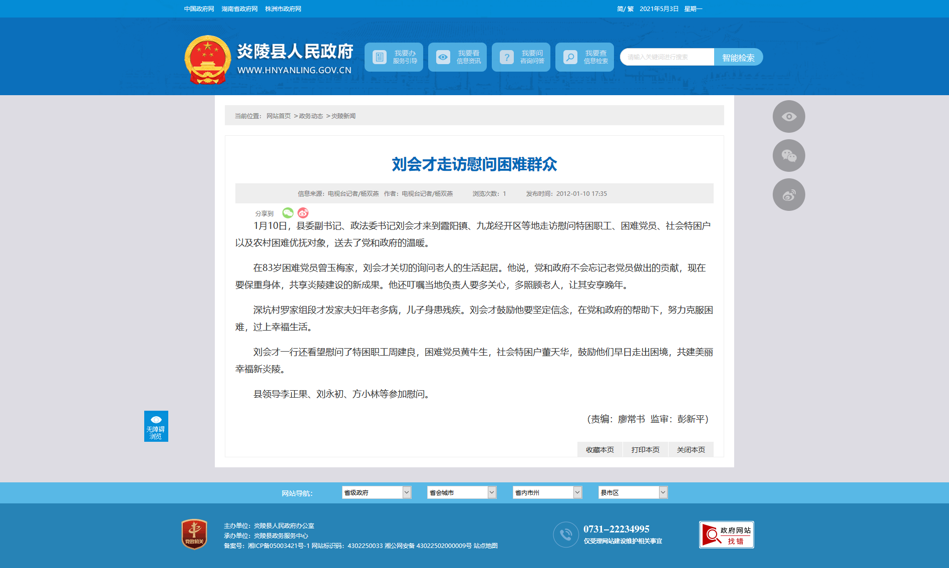 在83岁困难党员曾玉梅家,刘会才关切的询问老人的生活起居。他说,党和政府不会忘记老党员做出的贡献,现在要保重身体,共享炎陵建设的新成果。他还叮嘱当地负责人要多关心,多照顾老人,让其安享晚年。