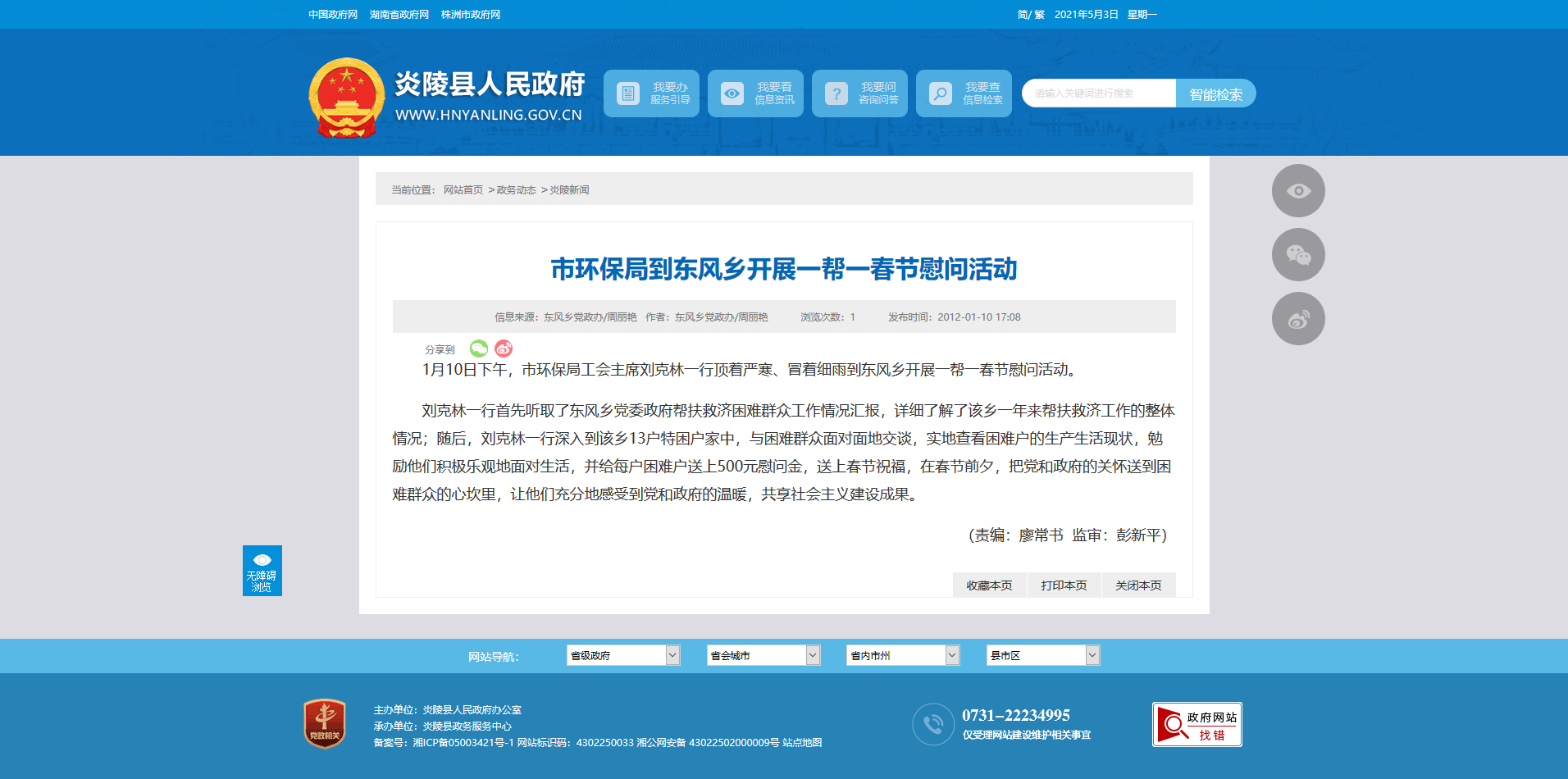 1月10日下午,市环保局工会主席刘克林一行顶着严寒、冒着细雨到东风乡开展一帮一春节慰问活动。