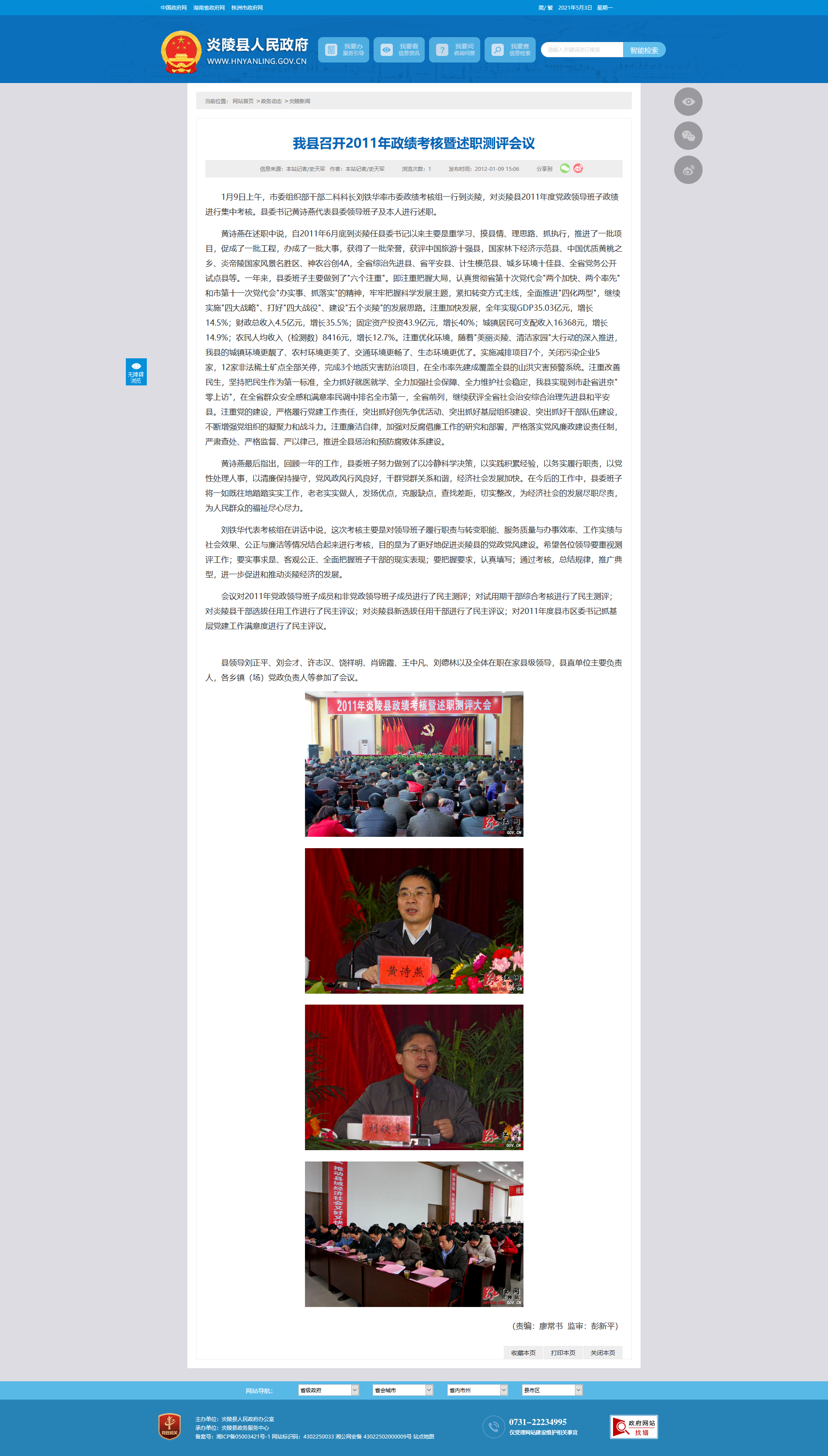 黄诗燕在述职中说,自2011年6月底到炎陵任县委书记以来主要是重学习、摸县情、理思路、抓执行,推进了一批项目,促成了一批工程,办成了一批大事,获得了一批荣誉,获评中国旅游十强县,国家林下经济示范县、中国优质黄桃之乡、炎帝陵国家风景名胜区、神农谷创4A,全省综治先进县、省平安县、计生模范县、城乡环境十佳县、全省党务公开试点县等。一年来,县委班子主要做到了"六个注重"。即注重把握大局,认真贯彻省第十次党代会"两个加快、两个率先"和市第十一次党代会"办实事、抓落实"的精神,牢牢把握科学发展主题,紧扣转变方式主线,全面推进"四化两型",继续实施"四大战略"、打好"四大战役"、建设"五个炎陵"的发展思路。注重加快发展,全年实现GDP35.03亿元,增长14.5%;财政总收入4.5亿元,增长35.5%;固定资产投资43.9亿元,增长40%;城镇居民可支配收入16368元,增长14.9%;农民人均收入(检测数)8416元,增长12.7%。注重优化环境,随着"美丽炎陵、清洁家园"大行动的深入推进,我县的城镇环境更靓了、农村环境更美了、交通环境更畅了、生态环境更优了。实施减排项目7个,关闭污染企业5家,12家非法稀土矿点全部关停,完成3个地质灾害防治项目,在全市率先建成覆盖全县的山洪灾害预警系统。注重改善民生,坚持把民生作为第一标准,全力抓好就医就学、全力加强社会保障、全力维护社会稳定,我县实现到市赴省进京"零上访",在全省群众安全感和满意率民调中排名全市第一,全省前列,继续获评全省社会治安综合治理先进县和平安县。注重党的建设,严格履行党建工作责任,突出抓好创先争优活动、突出抓好基层组织建设、突出抓好干部队伍建设,不断增强党组织的凝聚力和战斗力。注重廉洁自律,加强对反腐倡廉工作的研究和部署,严格落实党风廉政建设责任制,严肃查处、严格监督、严以律己,推进全县惩治和预防腐败体系建设。