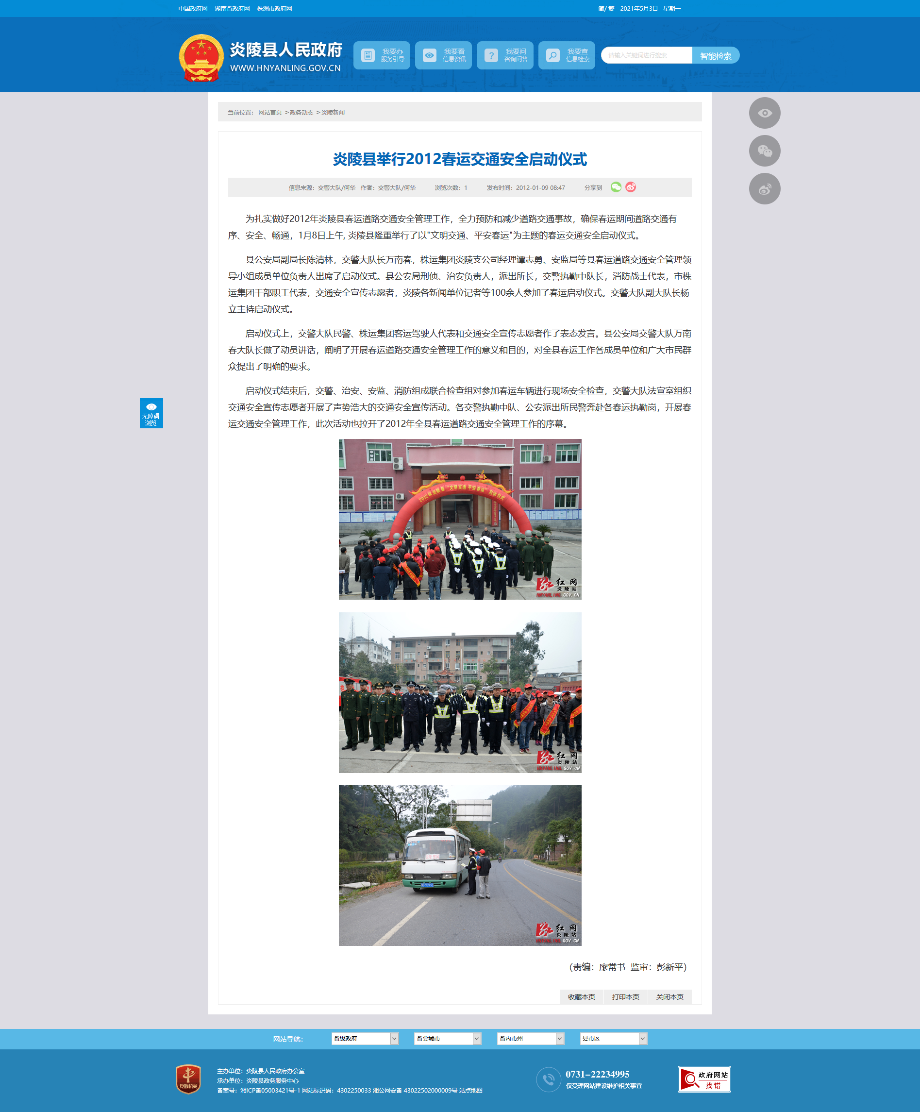 为扎实做好2012年炎陵县春运道路交通安全管理工作,全力预防和减少道路交通事故,确保春运期间道路交通有序、安全、畅通,1月8日上午, 炎陵县隆重举行了以"文明交通、平安春运"为主题的春运交通安全启动仪式。