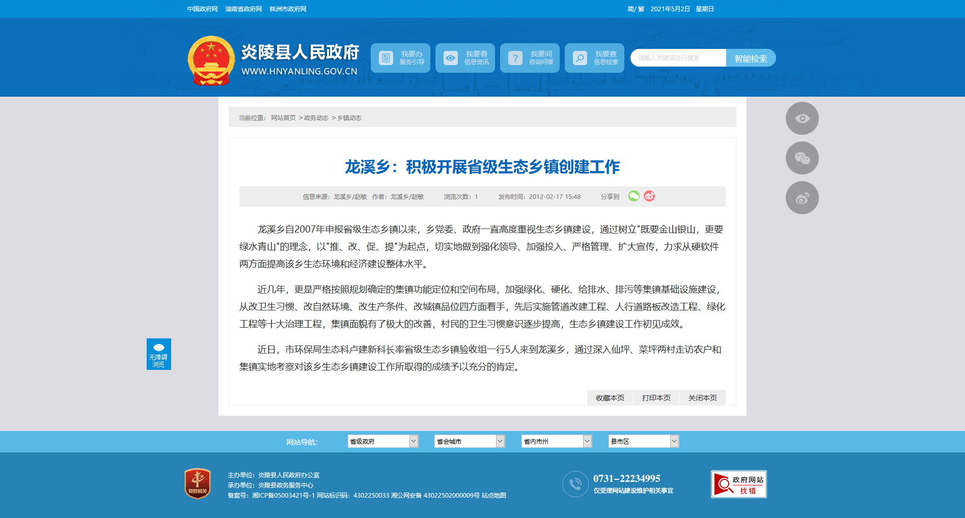龙溪乡自2007年申报省级生态乡镇以来,乡党委、政府一直高度重视生态乡镇建设,通过树立"既要金山银山,更要绿水青山"的理念,以"推、改、促、提"为起点,切实地做到强化领导、加强投入、严格管理、扩大宣传,力求从硬软件两方面提高该乡生态环境和经济建设整体水平。