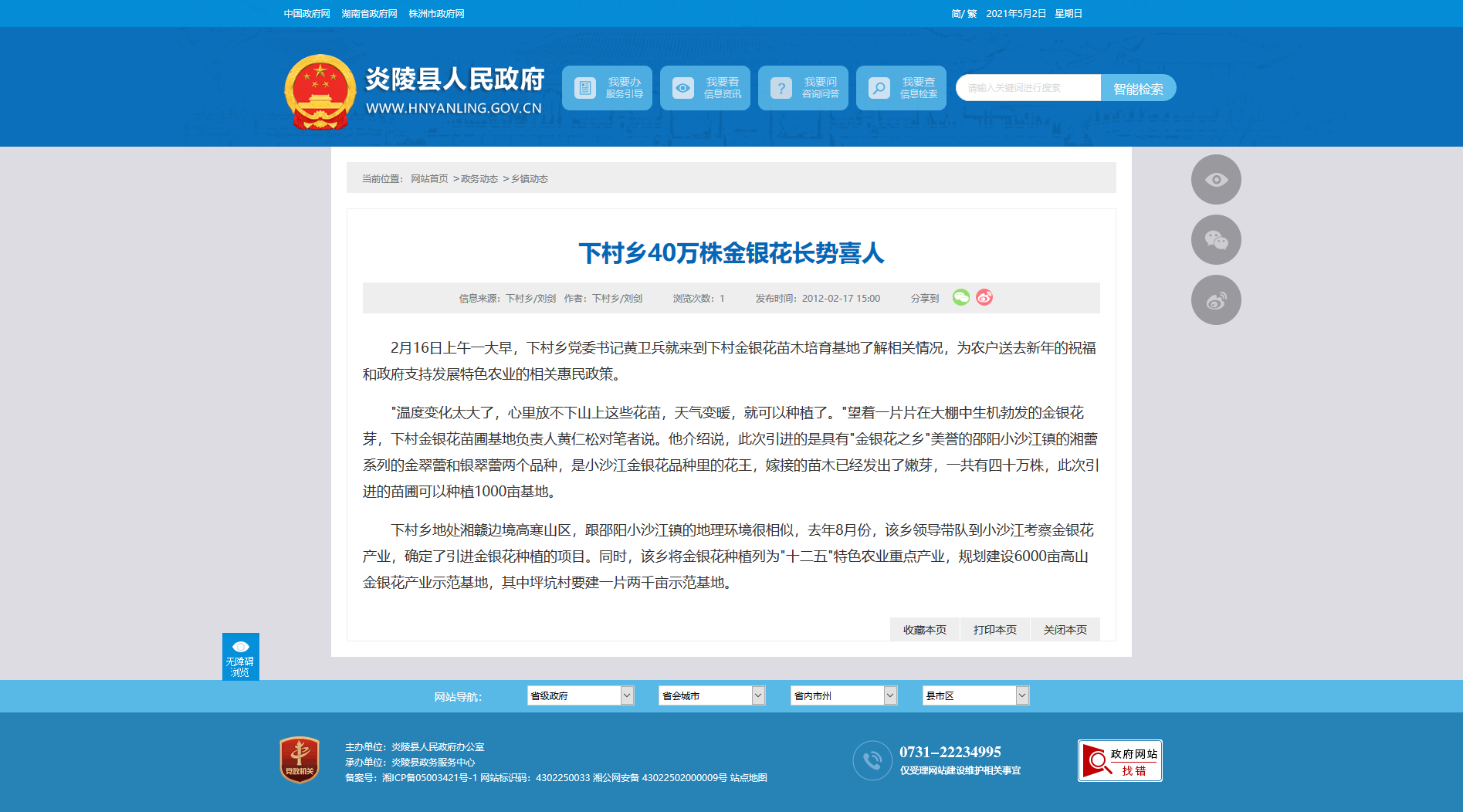 下村乡地处湘赣边境高寒山区,跟邵阳小沙江镇的地理环境很相似,去年8月份,该乡领导带队到小沙江考察金银花产业,确定了引进金银花种植的项目。同时,该乡将金银花种植列为"十二五"特色农业重点产业,规划建设6000亩高山金银花产业示范基地,其中坪坑村要建一片两千亩示范基地。