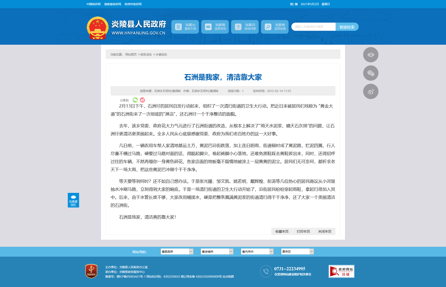 去年,该乡党委、政府花大力气元进行了石洲街道的改造,从根本上解决了"雨天水泥浆,晴天石灰扬"的问题,让石洲圩更清洁更美丽起来。全乡人民从心底里感谢党委、政府为我们老百姓办的这一大好事。