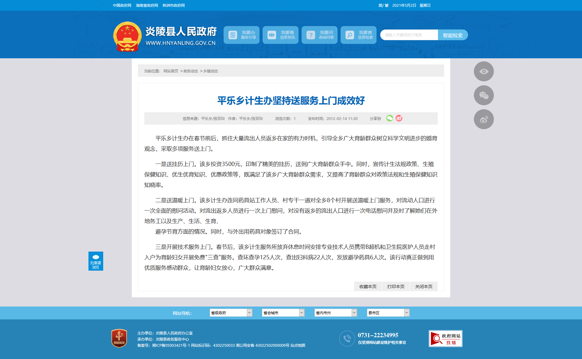 一是送挂历上门。该乡投资3500元,印制了精美的挂历,送到广大育龄群众手中。同时,宣传计生法规政策、生殖保健知识、优生优育知识、优惠政策等,既满足了该乡广大育龄群众需求,又提高了育龄群众对政策法规和生殖保健知识知晓率。